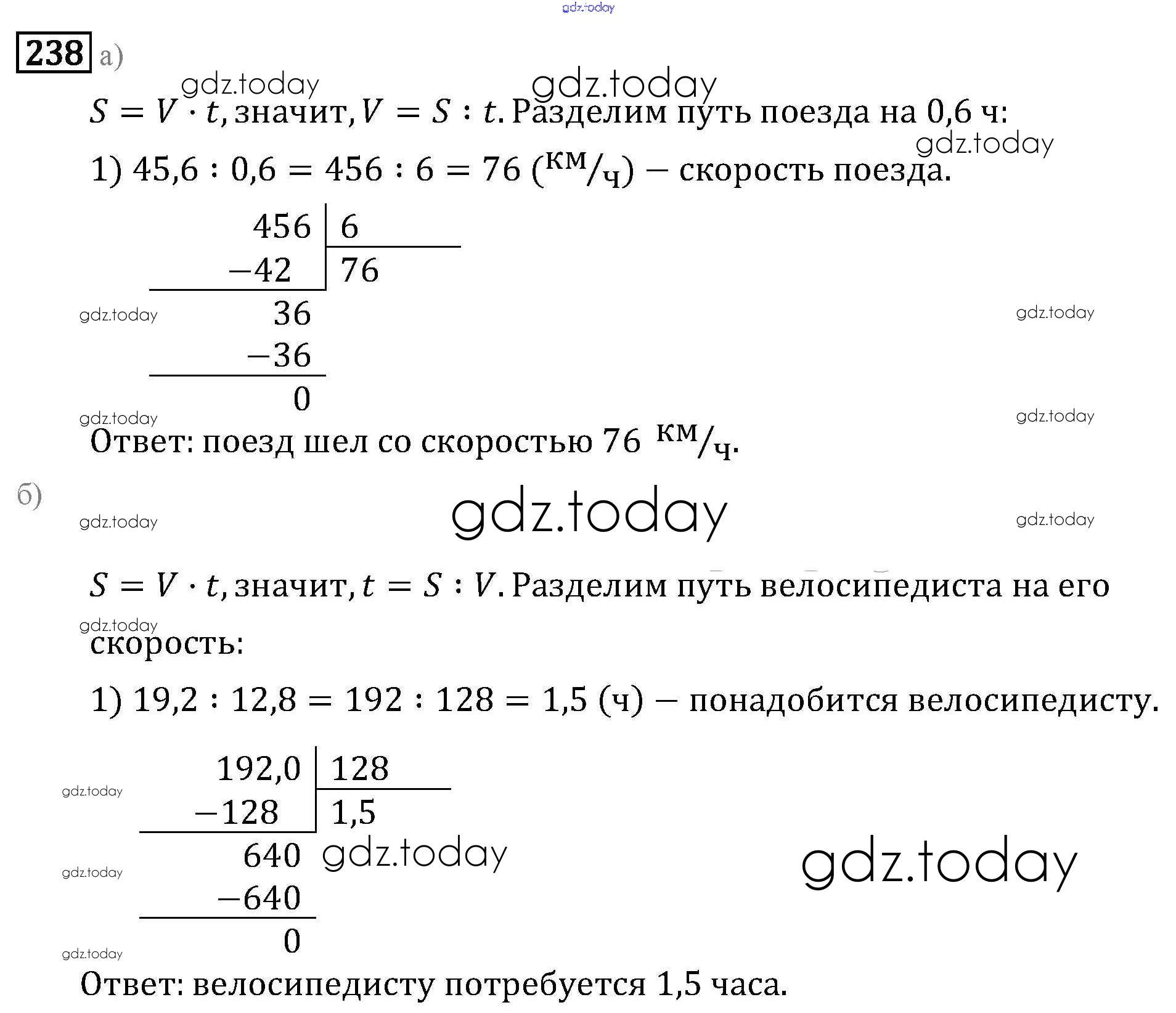 Ответы к Решение к упражнениям 238 Учебнику по Математике для 6 класса Бунимович, Кузнецова Просвещение Сферы 2019