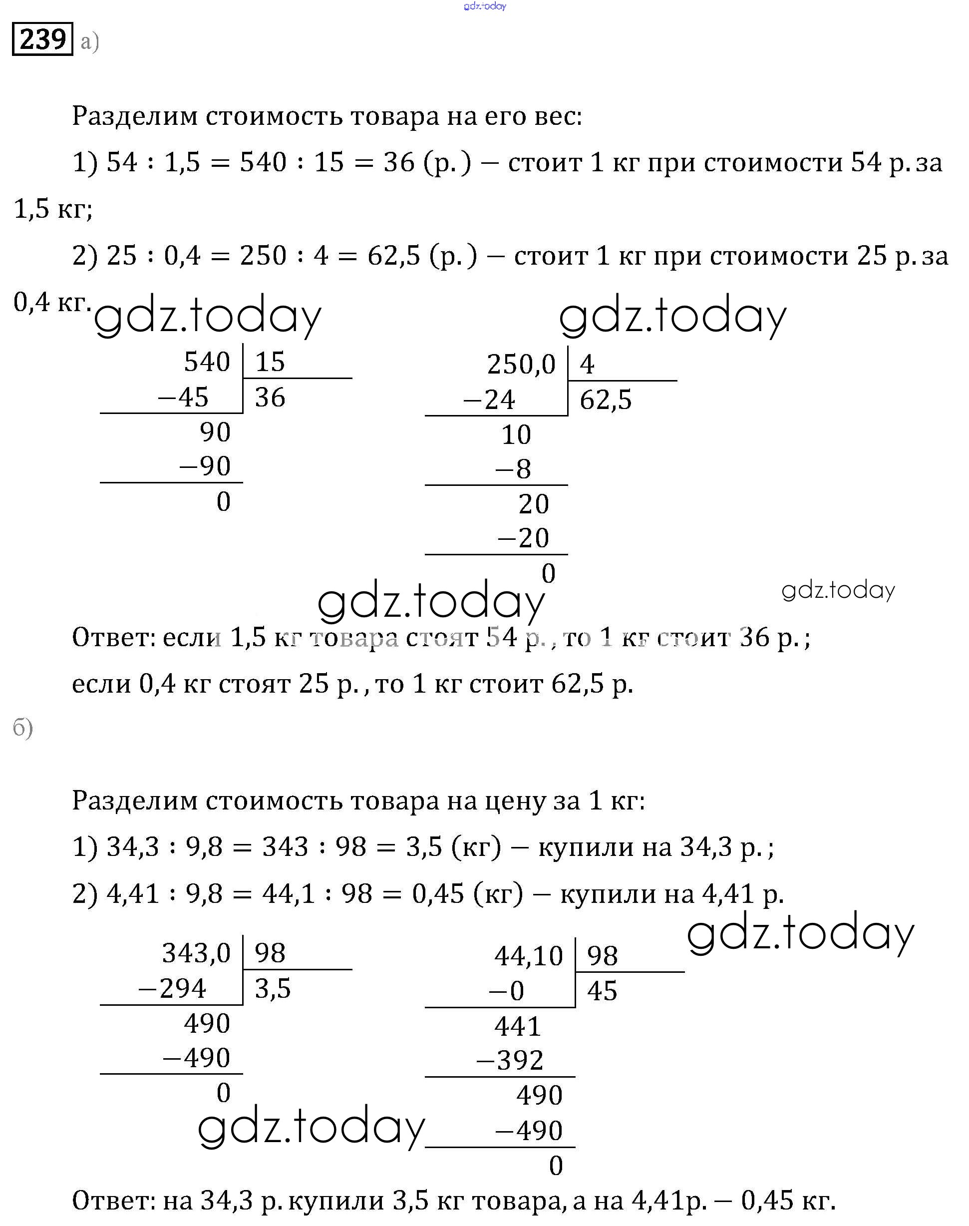 Ответы к Решение к упражнениям 239 Учебнику по Математике для 6 класса Бунимович, Кузнецова Просвещение Сферы 2019