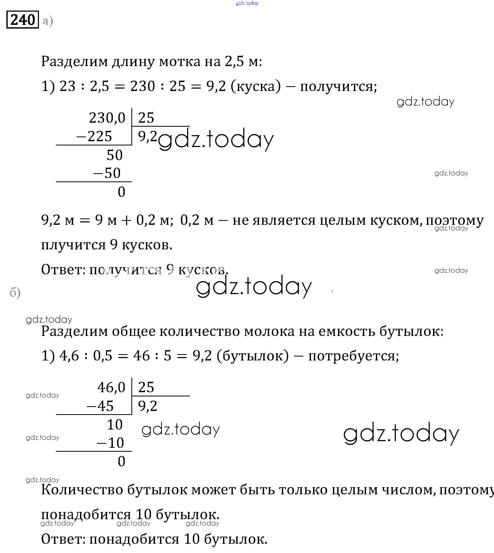 На страницах сайта gdz.today вы найдете учебный и вспомогательный материал, направленный на улучшения знаний школьной программы. ГДЗ - онлайн мир знаний Решение к упражнениям 240 Учебнику по Математике для 6 класса Бунимович, Кузнецова Просвещение Сферы 2019