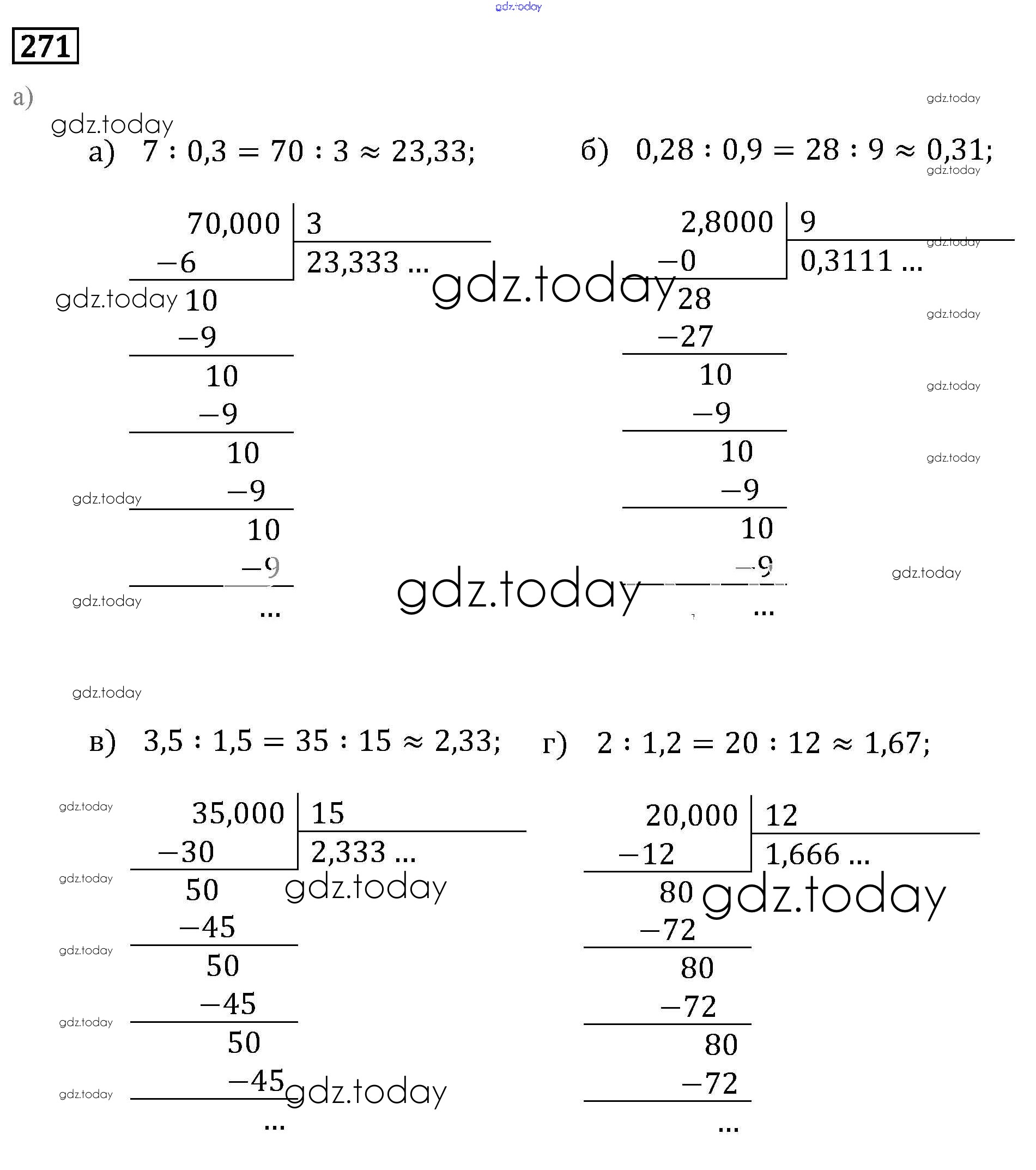 На страницах сайта gdz.today вы найдете учебный и вспомогательный материал, направленный на улучшения знаний школьной программы. ГДЗ - онлайн мир знаний Решение к упражнениям 271 Учебнику по Математике для 6 класса Бунимович, Кузнецова Просвещение Сферы 2019
