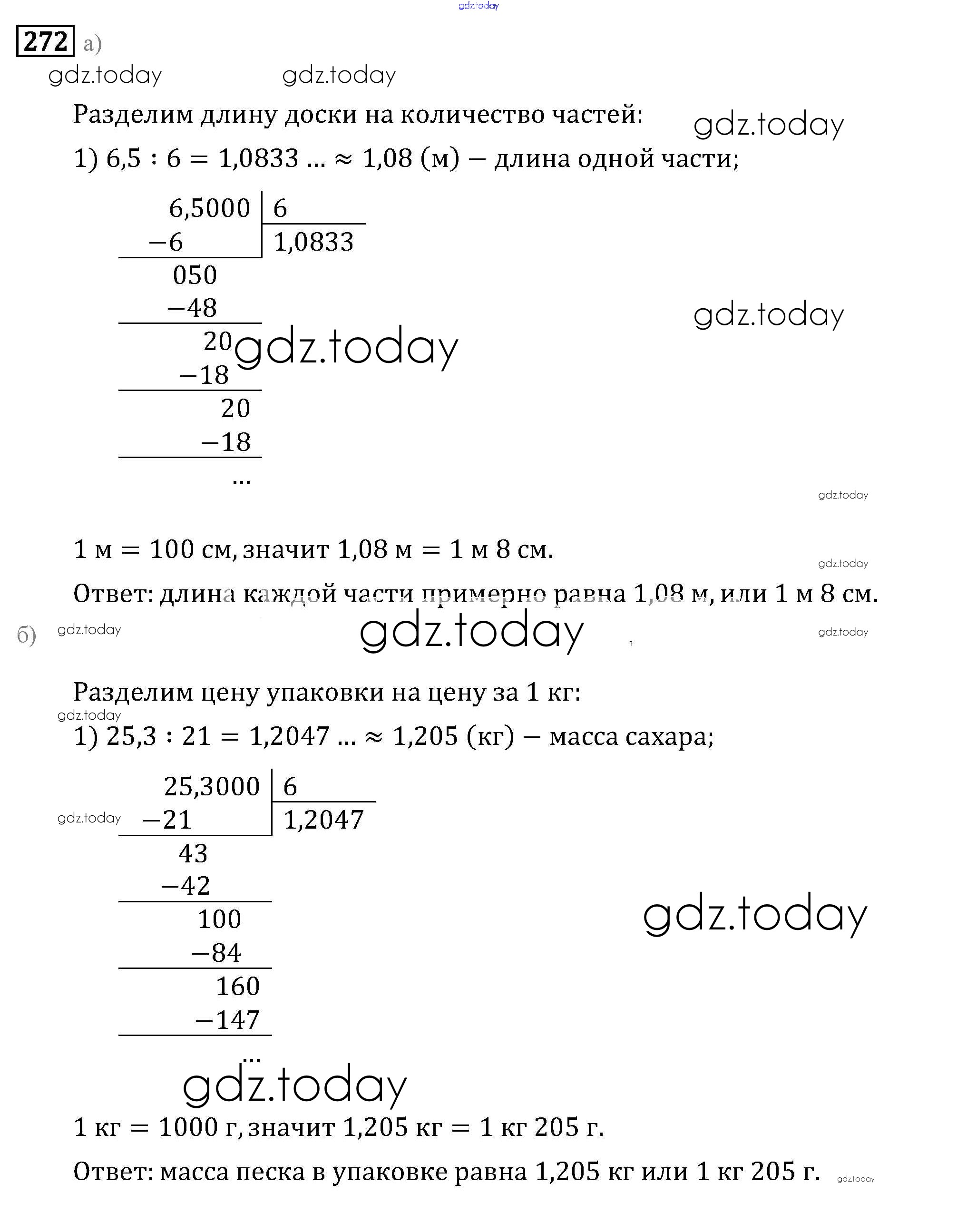 Ответы к Решение к упражнениям 272 Учебнику по Математике для 6 класса Бунимович, Кузнецова Просвещение Сферы 2019