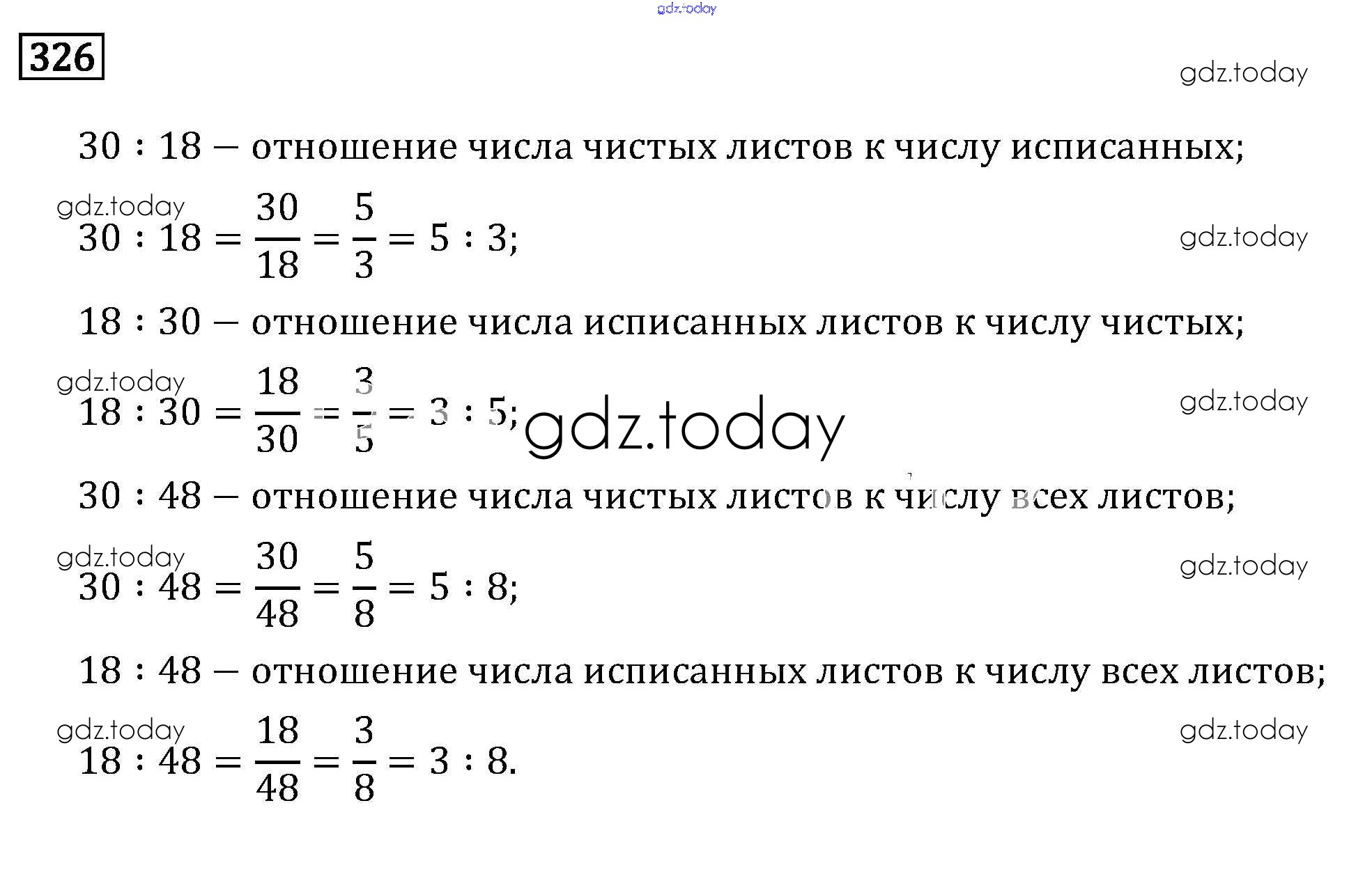 На страницах сайта gdz.today вы найдете учебный и вспомогательный материал, направленный на улучшения знаний школьной программы. ГДЗ - онлайн мир знаний Решение к упражнениям 326 Учебнику по Математике для 6 класса Бунимович, Кузнецова Просвещение Сферы 2019