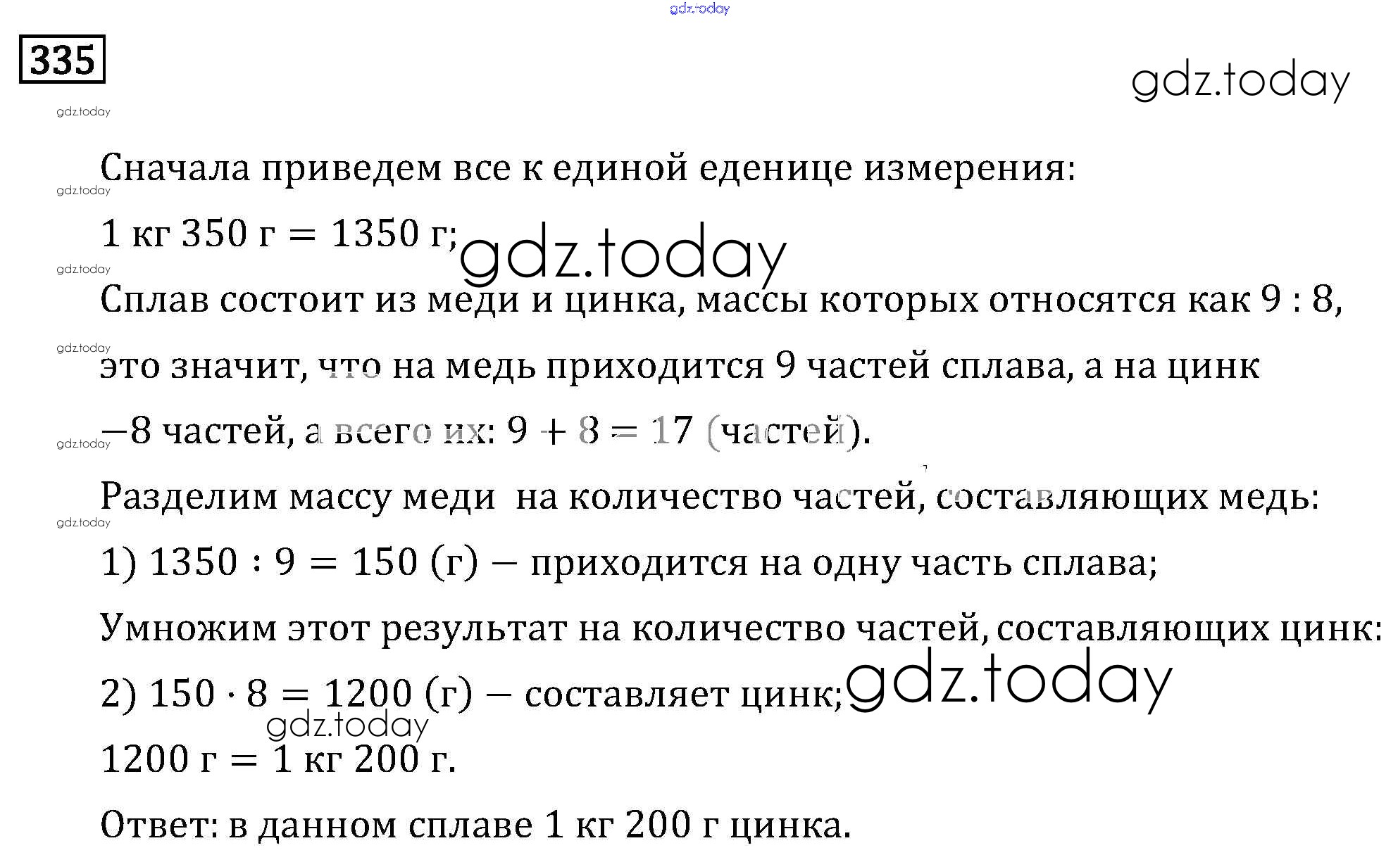 Ответы к Решение к упражнениям 335 Учебнику по Математике для 6 класса Бунимович, Кузнецова Просвещение Сферы 2019
