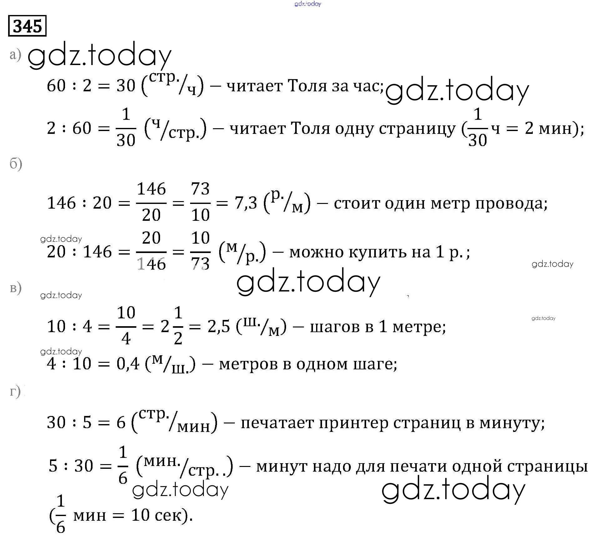Ответы к Решение к упражнениям 345 Учебнику по Математике для 6 класса Бунимович, Кузнецова Просвещение Сферы 2019