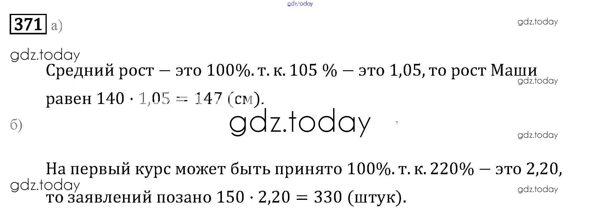 На страницах сайта gdz.today вы найдете учебный и вспомогательный материал, направленный на улучшения знаний школьной программы. ГДЗ - онлайн мир знаний Решение к упражнениям 371 Учебнику по Математике для 6 класса Бунимович, Кузнецова Просвещение Сферы 2019