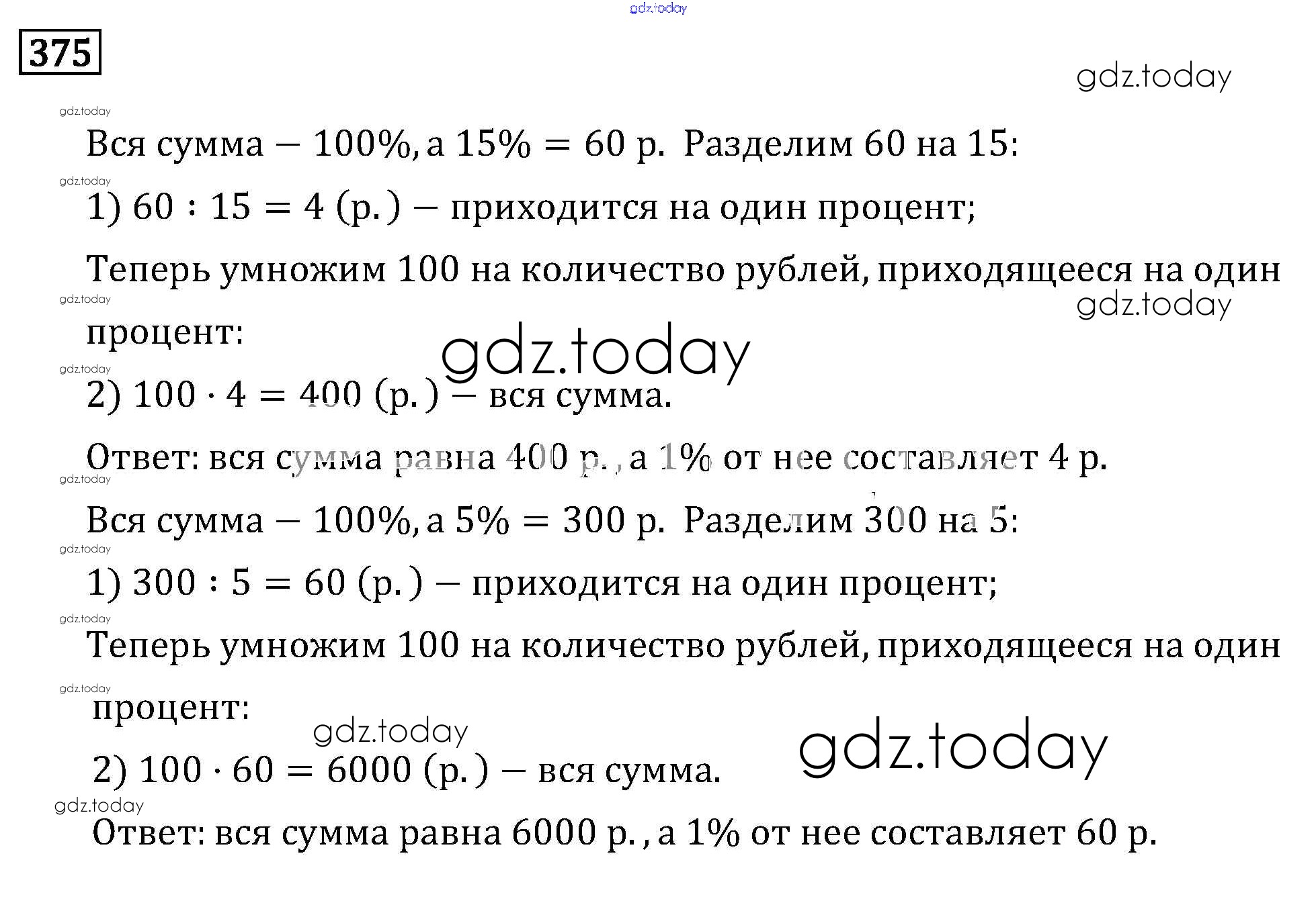 На страницах сайта gdz.today вы найдете учебный и вспомогательный материал, направленный на улучшения знаний школьной программы. ГДЗ - онлайн мир знаний Решение к упражнениям 375 Учебнику по Математике для 6 класса Бунимович, Кузнецова Просвещение Сферы 2019