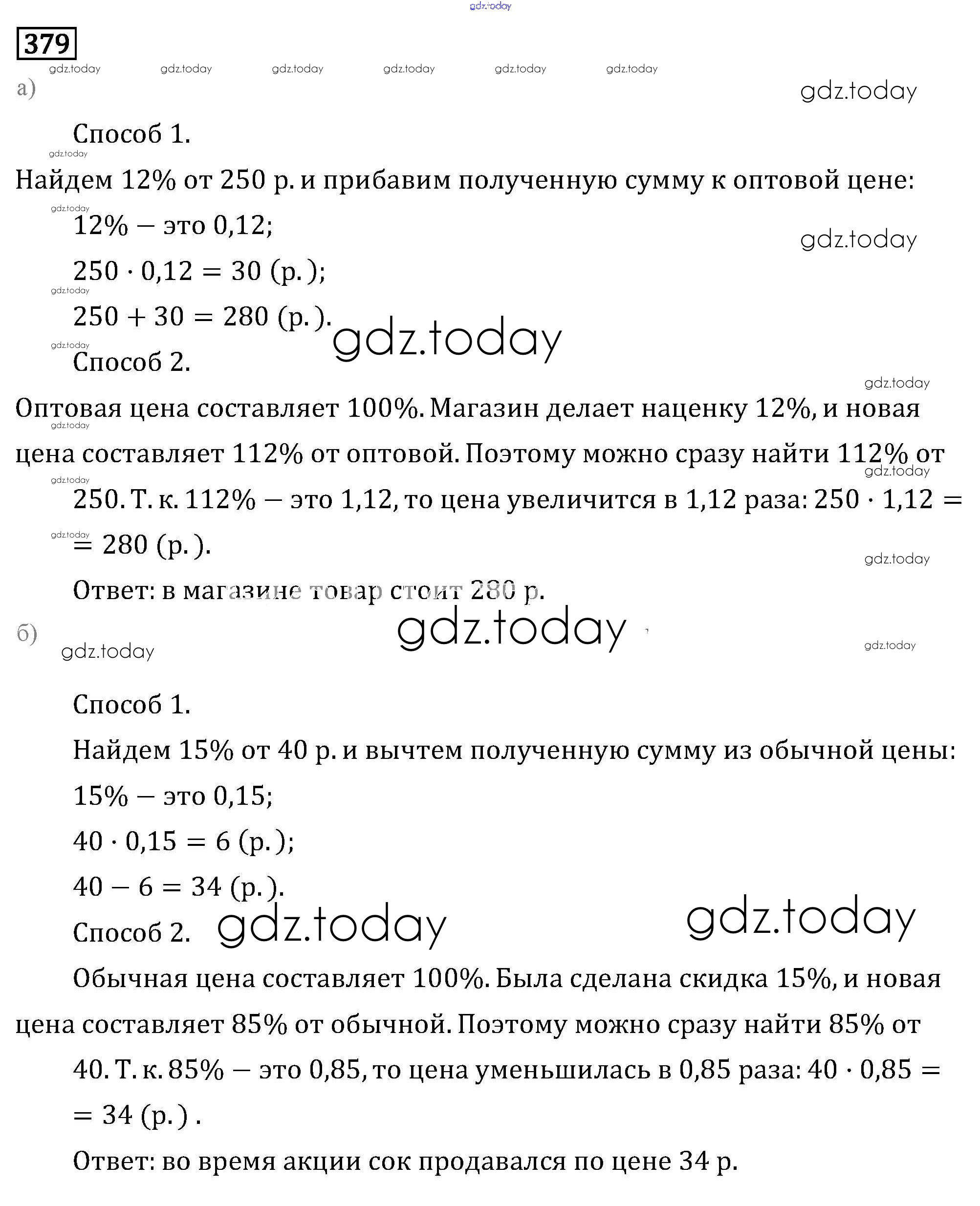 На страницах сайта gdz.today вы найдете учебный и вспомогательный материал, направленный на улучшения знаний школьной программы. ГДЗ - онлайн мир знаний Решение к упражнениям 379 Учебнику по Математике для 6 класса Бунимович, Кузнецова Просвещение Сферы 2019