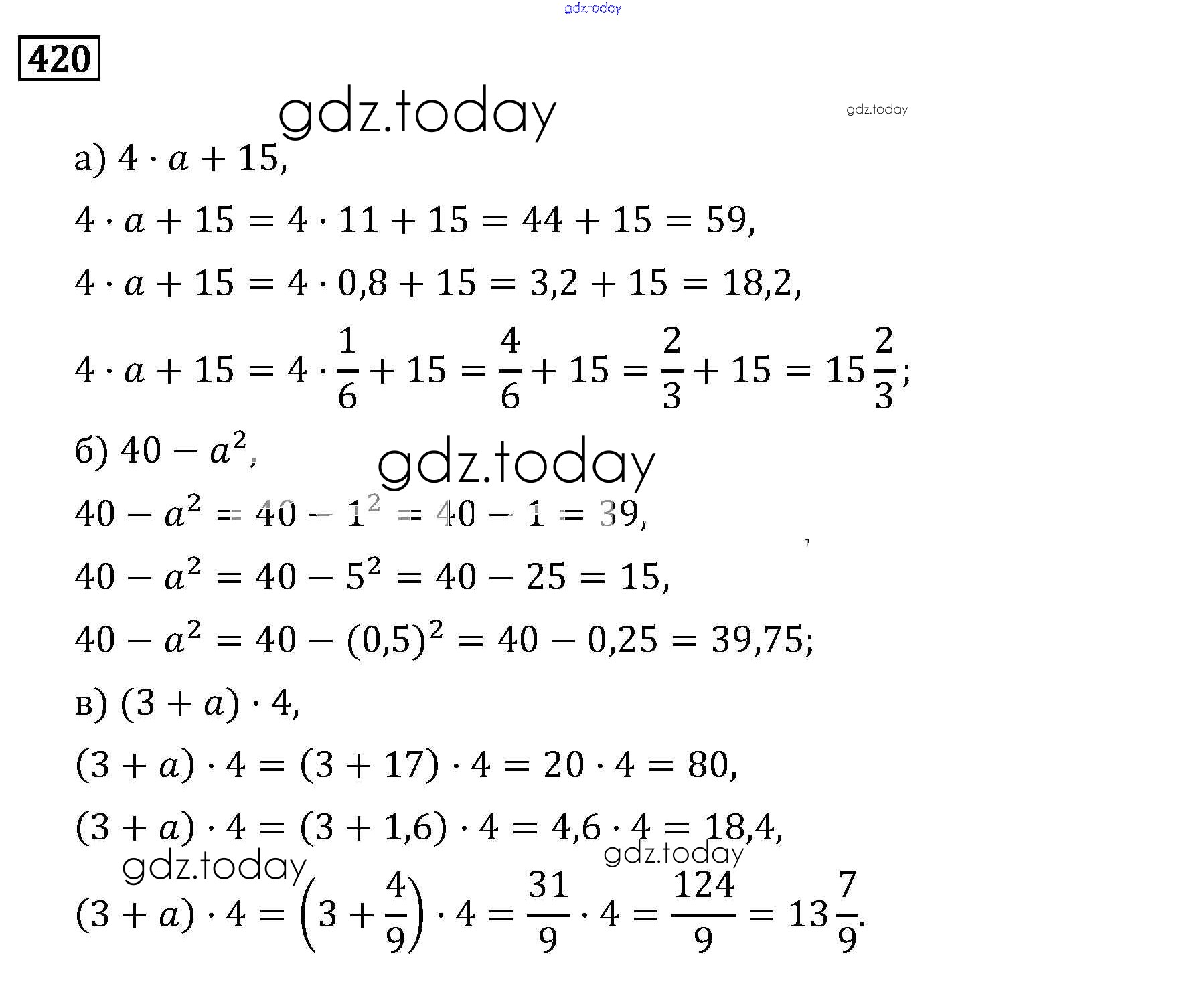 На страницах сайта gdz.today вы найдете учебный и вспомогательный материал, направленный на улучшения знаний школьной программы. ГДЗ - онлайн мир знаний Решение к упражнениям 420 Учебнику по Математике для 6 класса Бунимович, Кузнецова Просвещение Сферы 2019