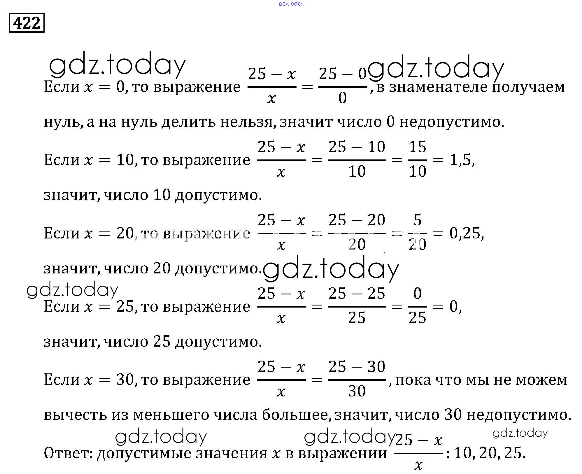 Ответы к Решение к упражнениям 422 Учебнику по Математике для 6 класса Бунимович, Кузнецова Просвещение Сферы 2019