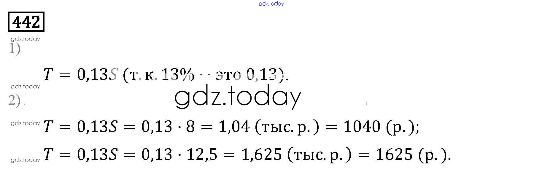 Ответы к Решение к упражнениям 442 Учебнику по Математике для 6 класса Бунимович, Кузнецова Просвещение Сферы 2019
