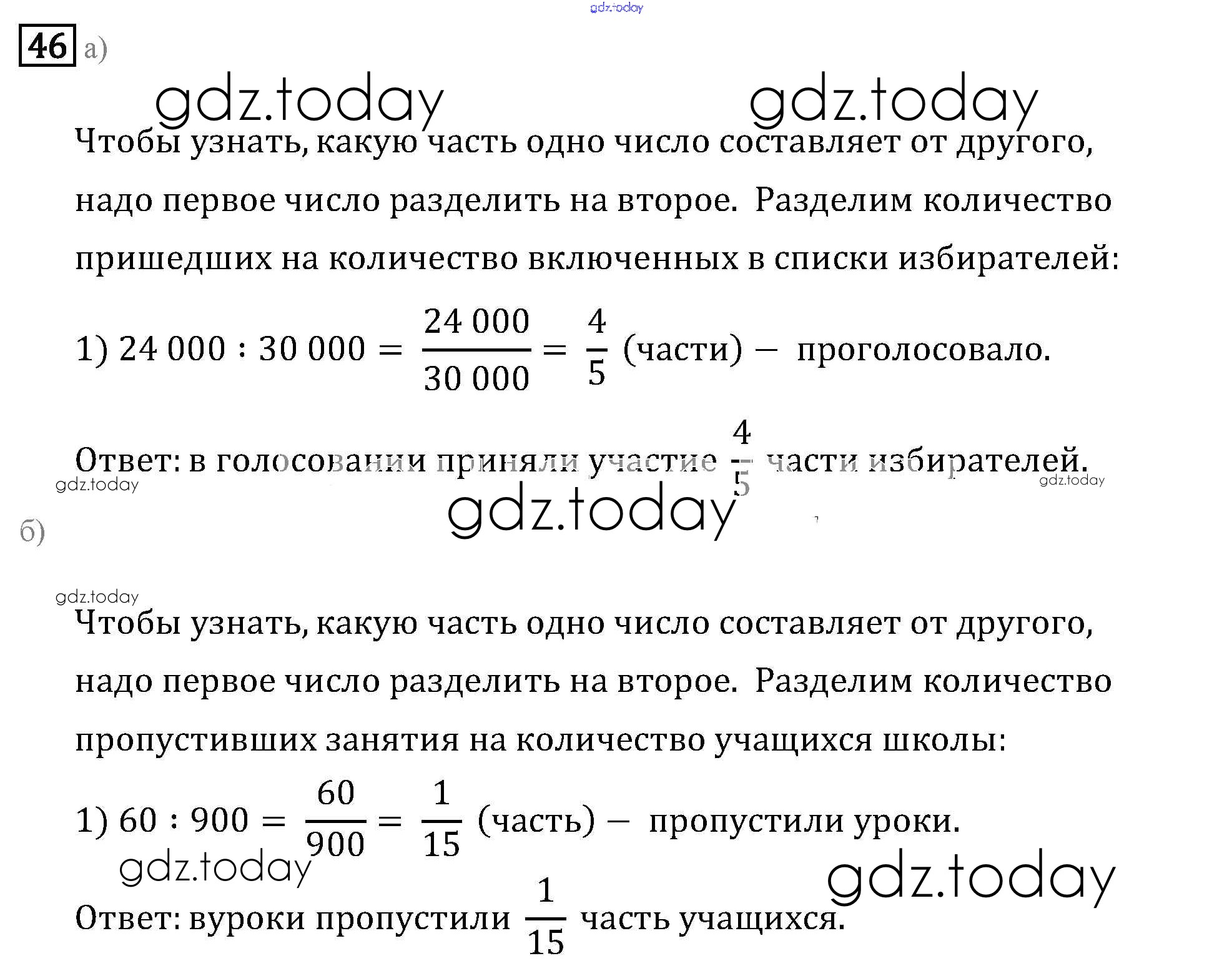 На страницах сайта gdz.today вы найдете учебный и вспомогательный материал, направленный на улучшения знаний школьной программы. ГДЗ - онлайн мир знаний Решение к упражнениям 46 Учебнику по Математике для 6 класса Бунимович, Кузнецова Просвещение Сферы 2019