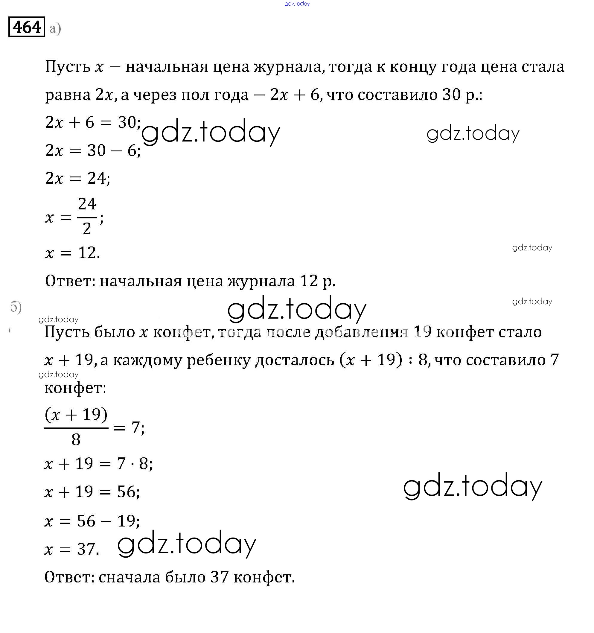 Ответы к Решение к упражнениям 464 Учебнику по Математике для 6 класса Бунимович, Кузнецова Просвещение Сферы 2019