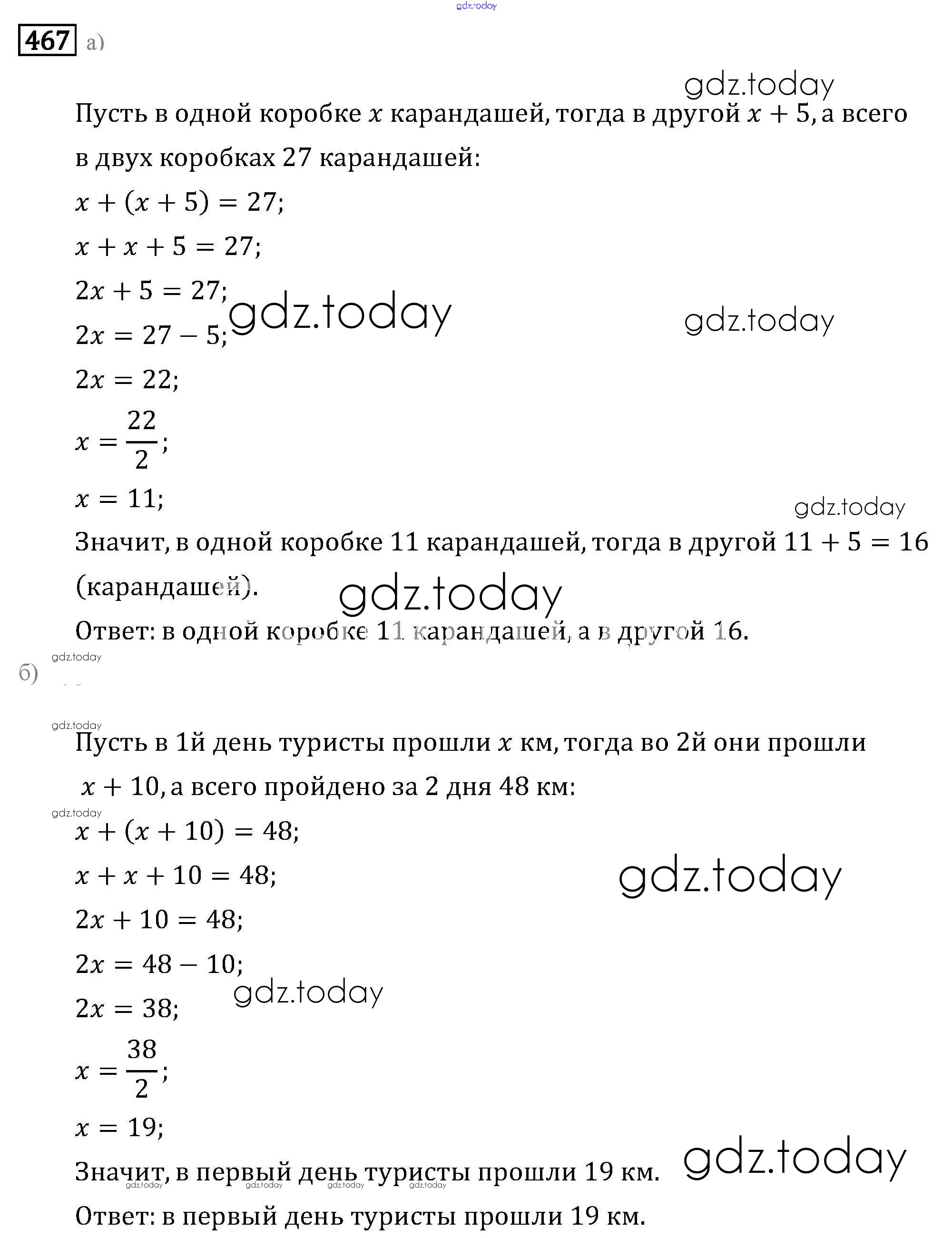 Ответы к Решение к упражнениям 467 Учебнику по Математике для 6 класса Бунимович, Кузнецова Просвещение Сферы 2019