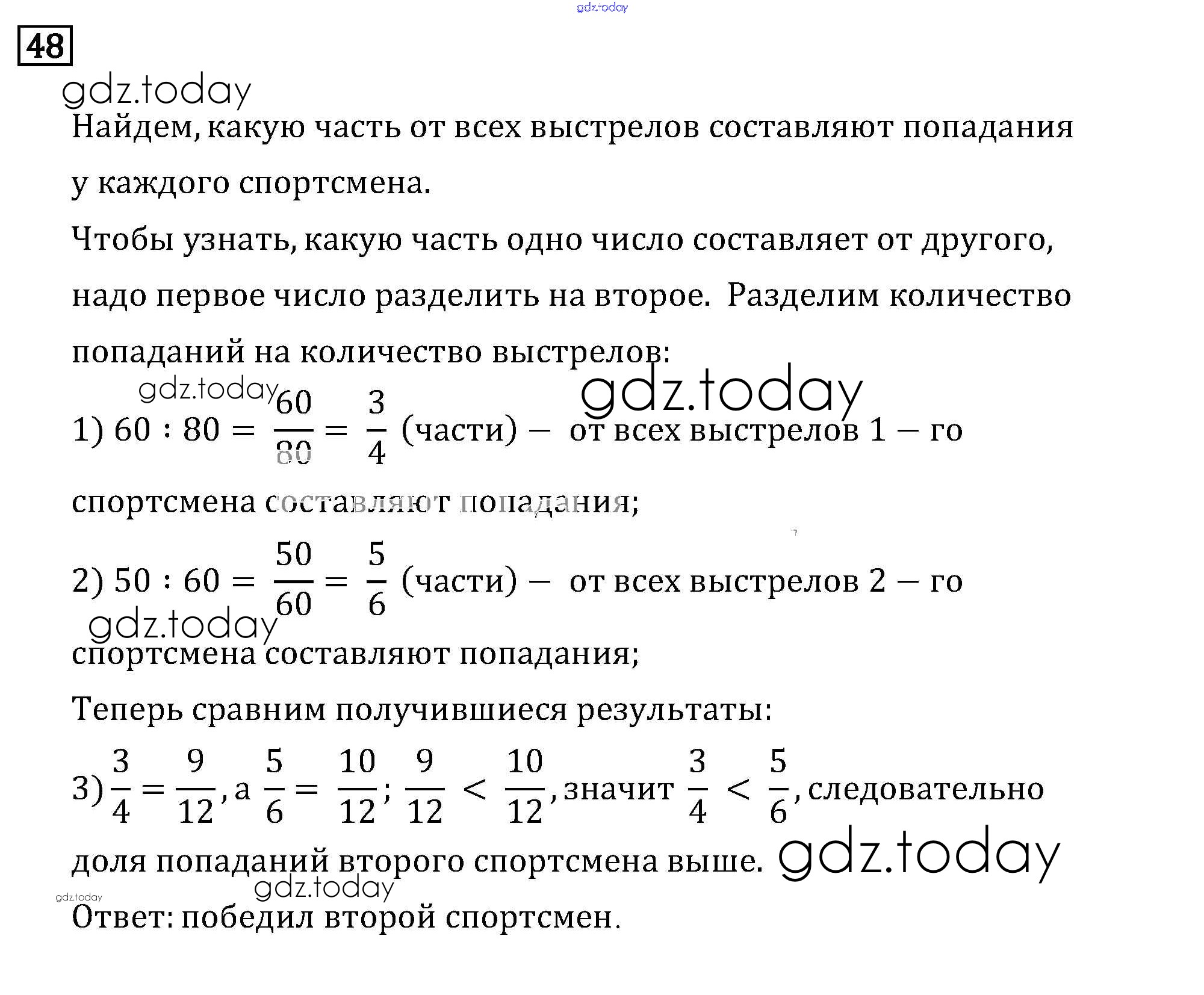 На страницах сайта gdz.today вы найдете учебный и вспомогательный материал, направленный на улучшения знаний школьной программы. ГДЗ - онлайн мир знаний Решение к упражнениям 48 Учебнику по Математике для 6 класса Бунимович, Кузнецова Просвещение Сферы 2019