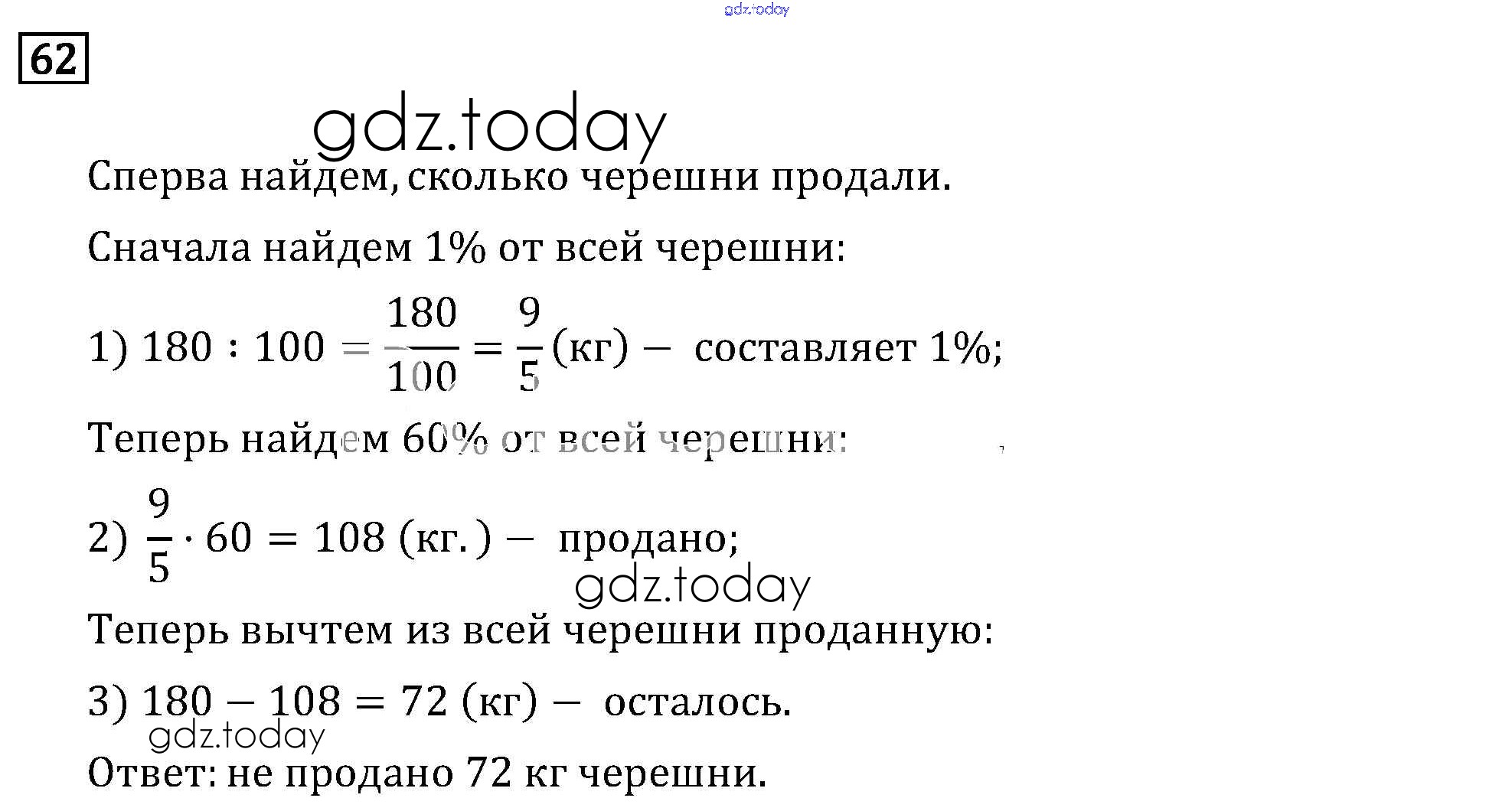 Ответы к Решение к упражнениям 62 Учебнику по Математике для 6 класса Бунимович, Кузнецова Просвещение Сферы 2019