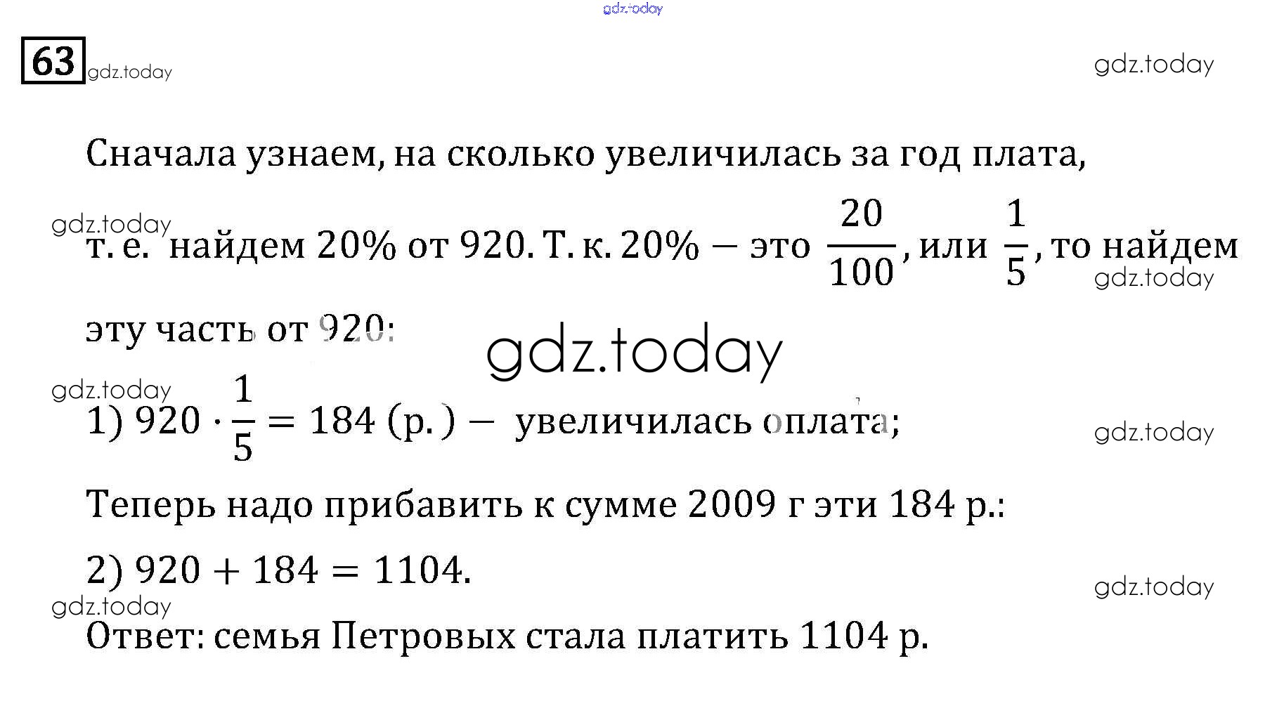 На страницах сайта gdz.today вы найдете учебный и вспомогательный материал, направленный на улучшения знаний школьной программы. ГДЗ - онлайн мир знаний Решение к упражнениям 63 Учебнику по Математике для 6 класса Бунимович, Кузнецова Просвещение Сферы 2019
