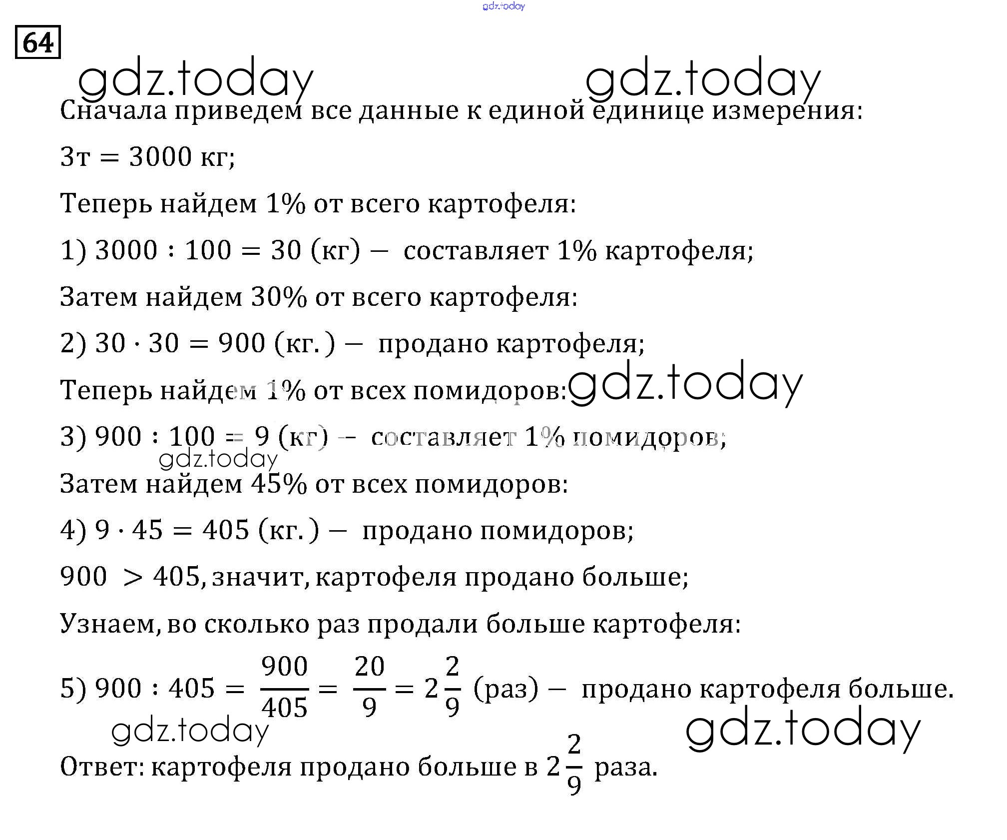 На страницах сайта gdz.today вы найдете учебный и вспомогательный материал, направленный на улучшения знаний школьной программы. ГДЗ - онлайн мир знаний Решение к упражнениям 64 Учебнику по Математике для 6 класса Бунимович, Кузнецова Просвещение Сферы 2019