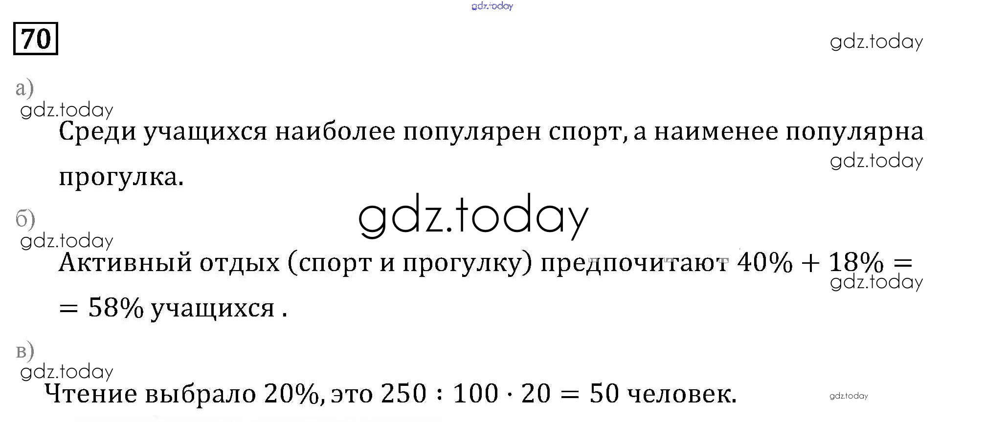 На страницах сайта gdz.today вы найдете учебный и вспомогательный материал, направленный на улучшения знаний школьной программы. ГДЗ - онлайн мир знаний Решение к упражнениям 70 Учебнику по Математике для 6 класса Бунимович, Кузнецова Просвещение Сферы 2019