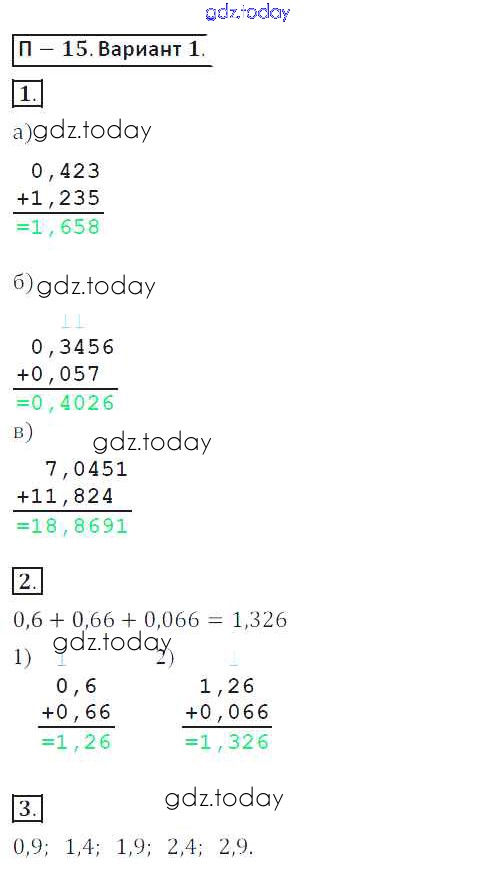 Ответы к ПР-15 Решение. Проверочные работы 1 Дидактическим материалам по Математике для 6 класса Кузнецова, Минаева Просвещение 2017