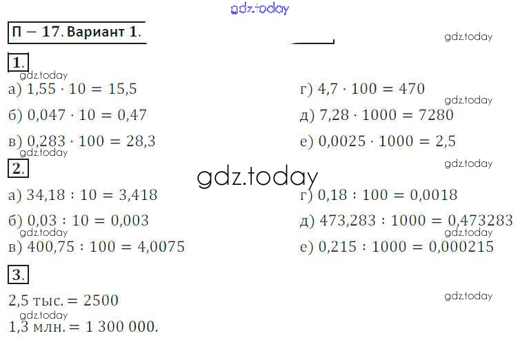 На страницах сайта gdz.today вы найдете учебный и вспомогательный материал, направленный на улучшения знаний школьной программы. ГДЗ - онлайн мир знаний ПР-17 Решение. Проверочные работы 1 Дидактическим материалам по Математике для 6 класса Кузнецова, Минаева Просвещение 2017