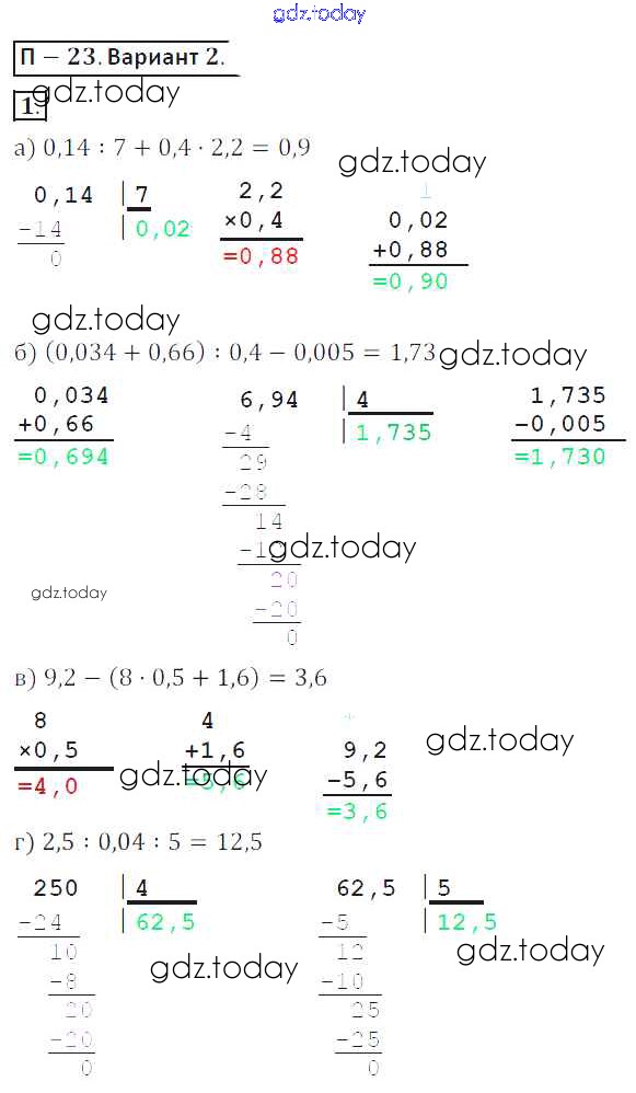 Ответы к ПР-23 Решение. Проверочные работы 2 Дидактическим материалам по Математике для 6 класса Кузнецова, Минаева Просвещение 2017