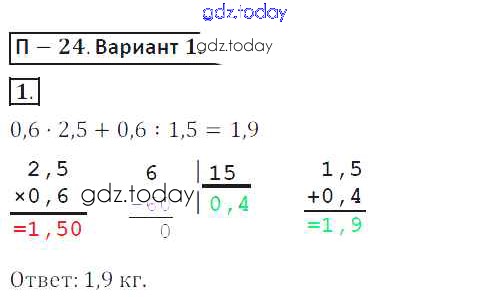 Ответы к ПР-24 Решение. Проверочные работы 1 Дидактическим материалам по Математике для 6 класса Кузнецова, Минаева Просвещение 2017