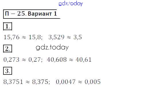 Ответы к ПР-25 Решение. Проверочные работы 1 Дидактическим материалам по Математике для 6 класса Кузнецова, Минаева Просвещение 2017