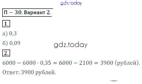 Ответы к ПР-30 Решение. Проверочные работы 2 Дидактическим материалам по Математике для 6 класса Кузнецова, Минаева Просвещение 2017