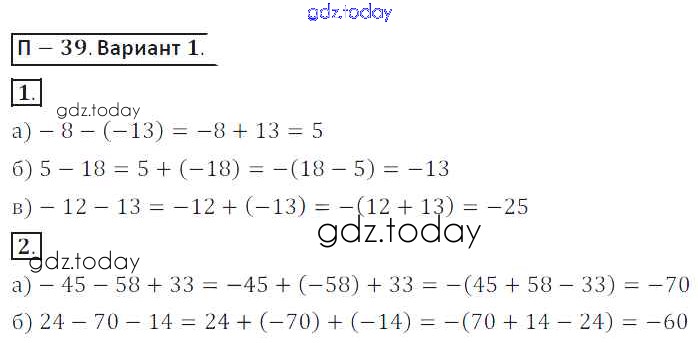 Ответы к ПР-39 Решение. Проверочные работы 1 Дидактическим материалам по Математике для 6 класса Кузнецова, Минаева Просвещение 2017