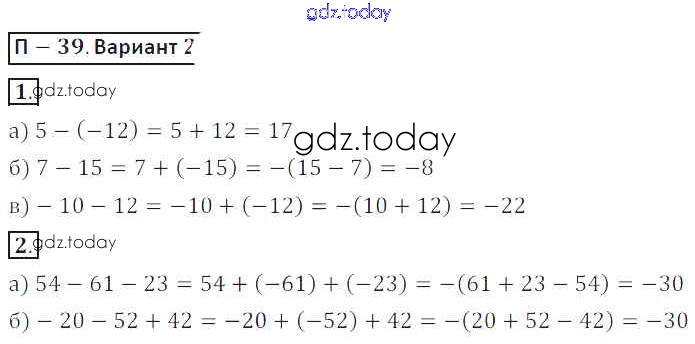 Ответы к ПР-39 Решение. Проверочные работы 2 Дидактическим материалам по Математике для 6 класса Кузнецова, Минаева Просвещение 2017