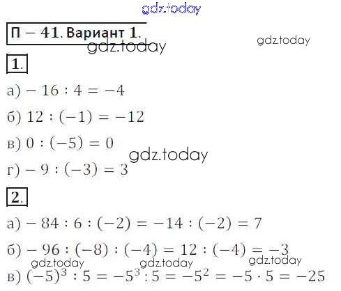 Ответы к ПР-41 Решение. Проверочные работы 1 Дидактическим материалам по Математике для 6 класса Кузнецова, Минаева Просвещение 2017