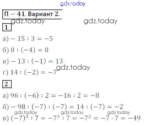 Ответы к ПР-41 Решение. Проверочные работы 2 Дидактическим материалам по Математике для 6 класса Кузнецова, Минаева Просвещение 2017