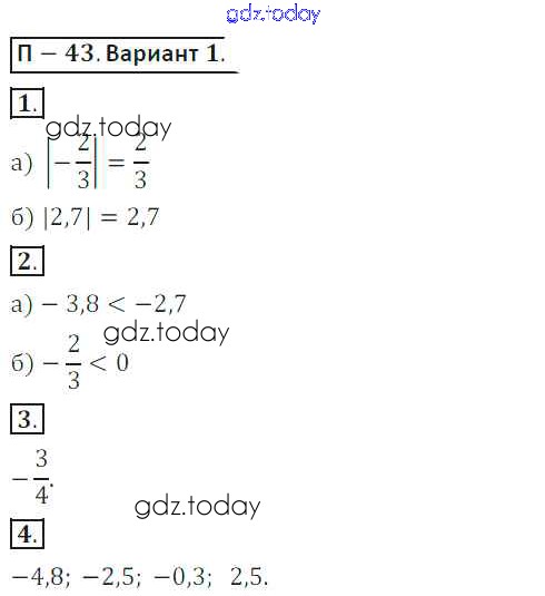 Ответы к ПР-43 Решение. Проверочные работы 1 Дидактическим материалам по Математике для 6 класса Кузнецова, Минаева Просвещение 2017