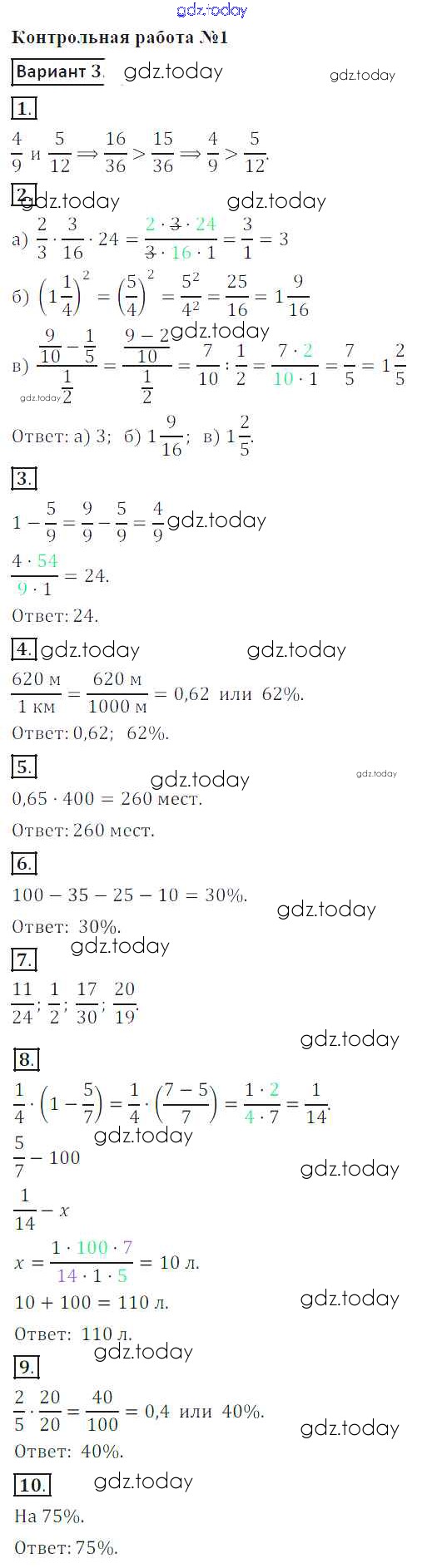 Ответы к Решение к КР-1. Варианты 3 Контрольным работам по Математике для 6 класса Кузнецова, Минаева Просвещение 2017
