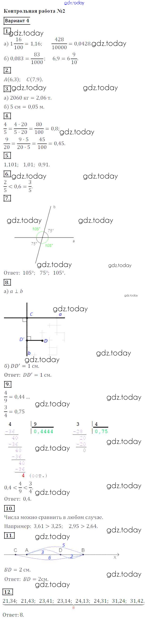 Ответы к Решение к КР-2. Варианты 4 Контрольным работам по Математике для 6 класса Кузнецова, Минаева Просвещение 2017
