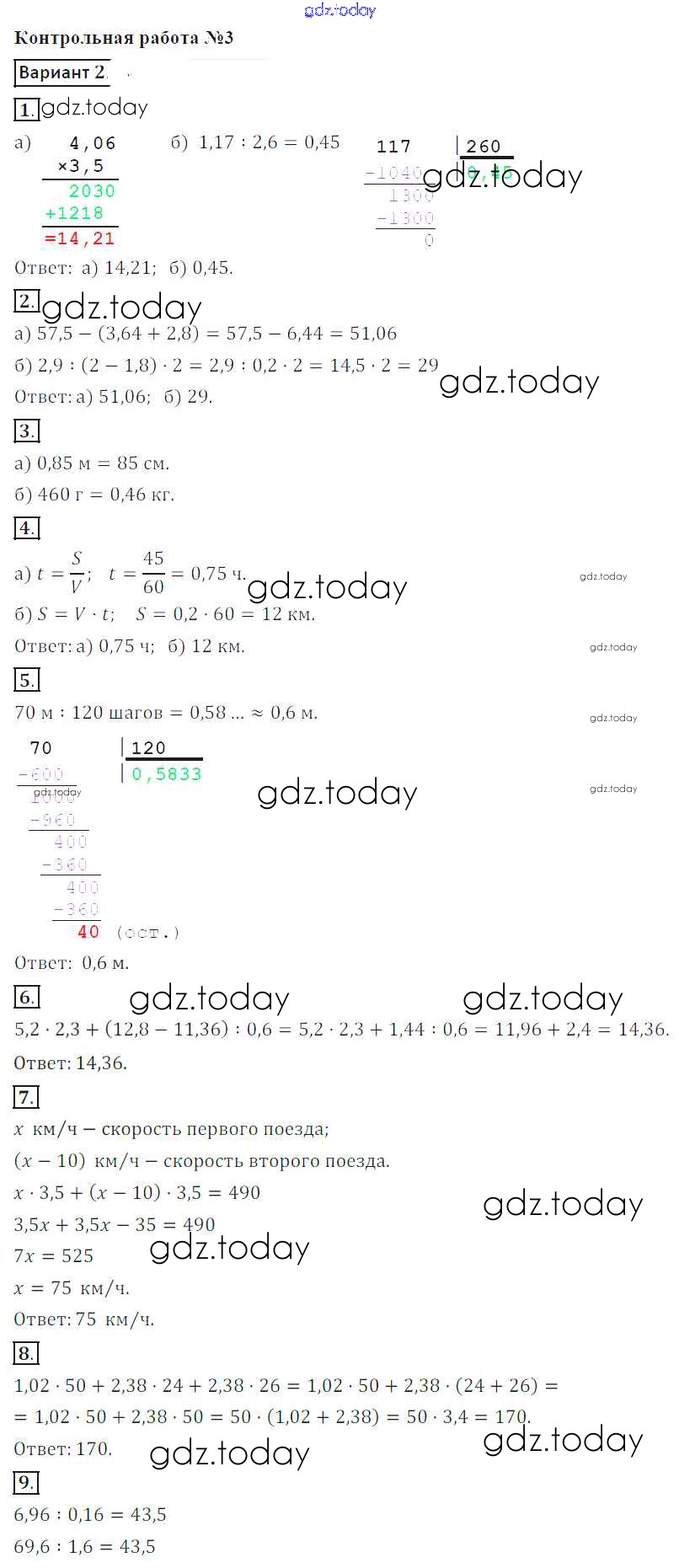 Ответы к Решение к КР-3. Варианты 2 Контрольным работам по Математике для 6 класса Кузнецова, Минаева Просвещение 2017
