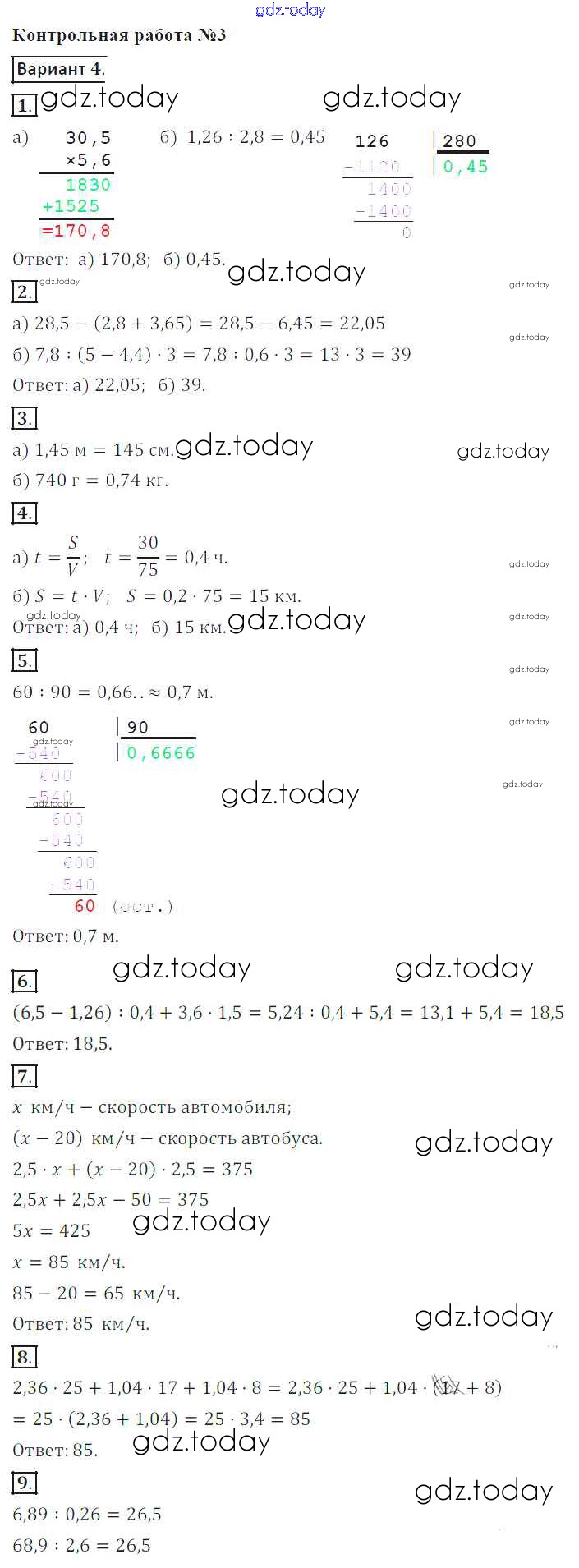 Ответы к Решение к КР-3. Варианты 4 Контрольным работам по Математике для 6 класса Кузнецова, Минаева Просвещение 2017