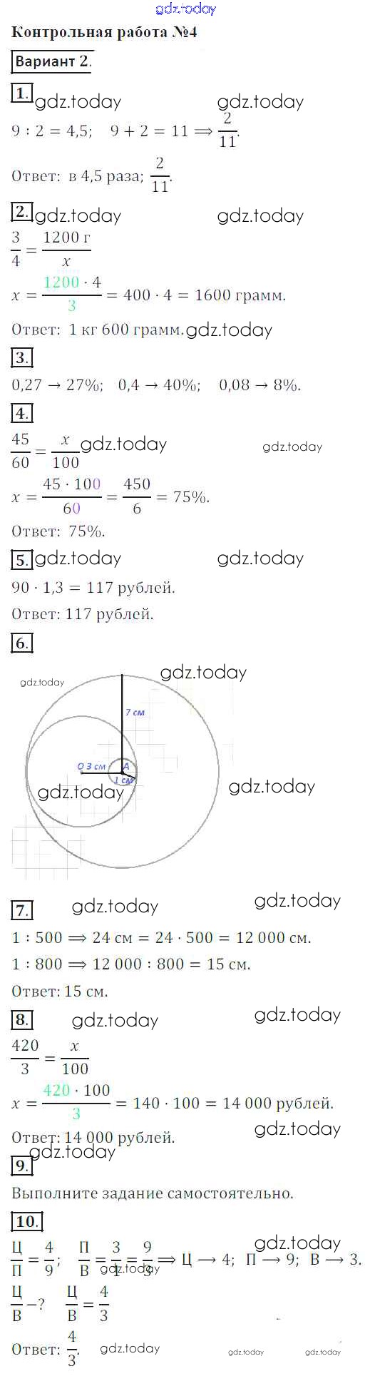 На страницах сайта gdz.today вы найдете учебный и вспомогательный материал, направленный на улучшения знаний школьной программы. ГДЗ - онлайн мир знаний Решение к КР-4. Варианты 2 Контрольным работам по Математике для 6 класса Кузнецова, Минаева Просвещение 2017