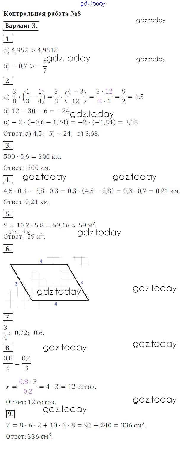 Ответы к Решение к КР-8. Варианты 3 Контрольным работам по Математике для 6 класса Кузнецова, Минаева Просвещение 2017