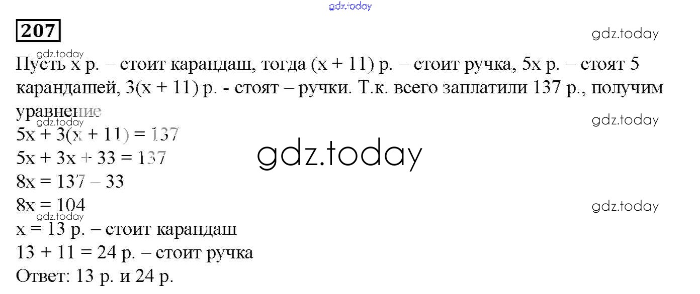 Ответы к Вариант 1 Решение к упражнениям 207 Дидактическим материалам по Математике для 6 класса Мерзляк, Полонский Вентана-граф Алгоритм успеха 2017