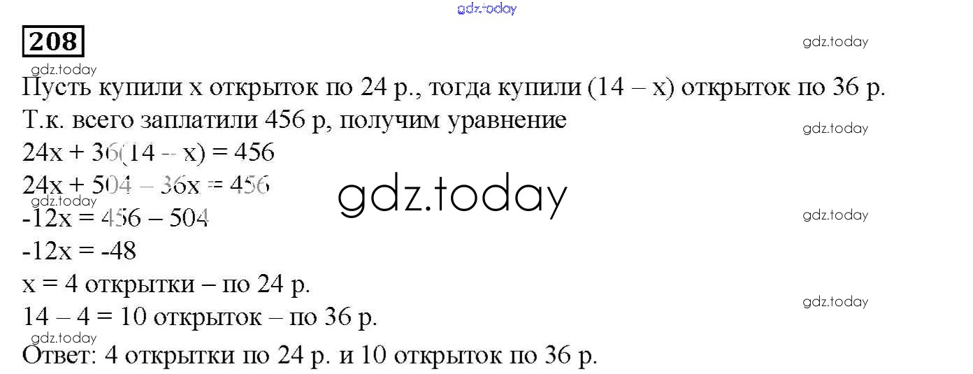 Ответы к Вариант 1 Решение к упражнениям 208 Дидактическим материалам по Математике для 6 класса Мерзляк, Полонский Вентана-граф Алгоритм успеха 2017