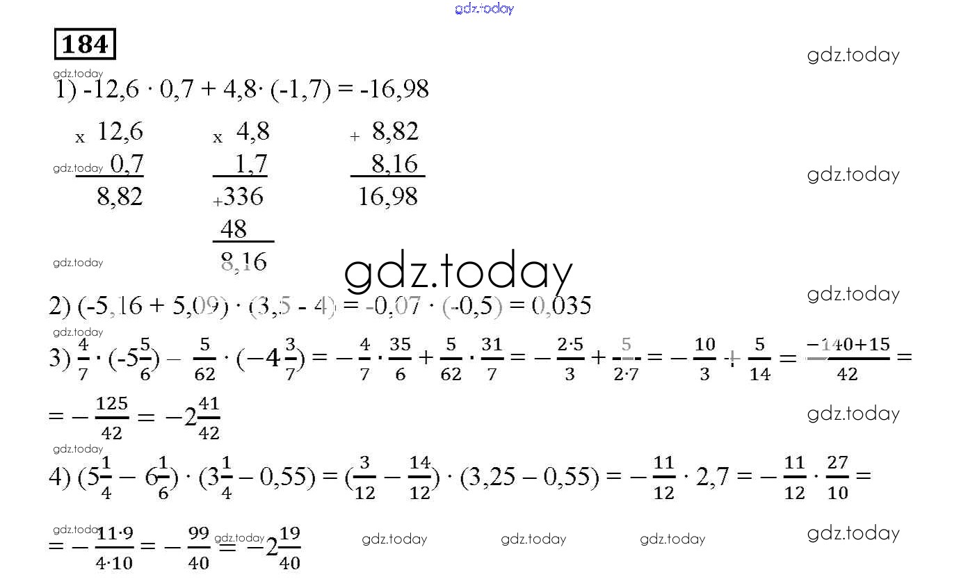 Ответы к Вариант 2 Решение к упражнениям 184 Дидактическим материалам по Математике для 6 класса Мерзляк, Полонский Вентана-граф Алгоритм успеха 2017