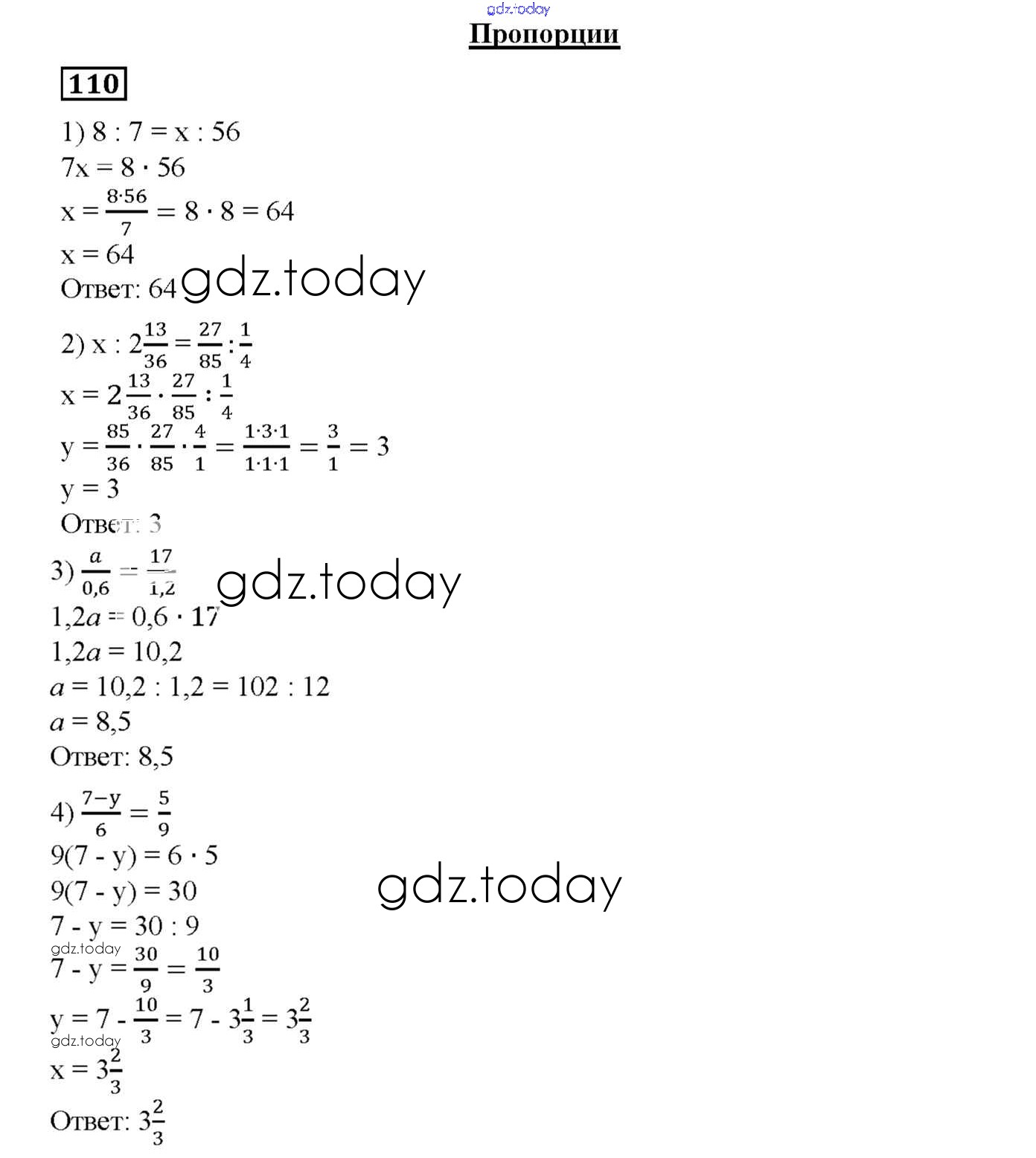 Ответы к Вариант 4 Решение к упражнениям 110 Дидактическим материалам по Математике для 6 класса Мерзляк, Полонский Вентана-граф Алгоритм успеха 2017
