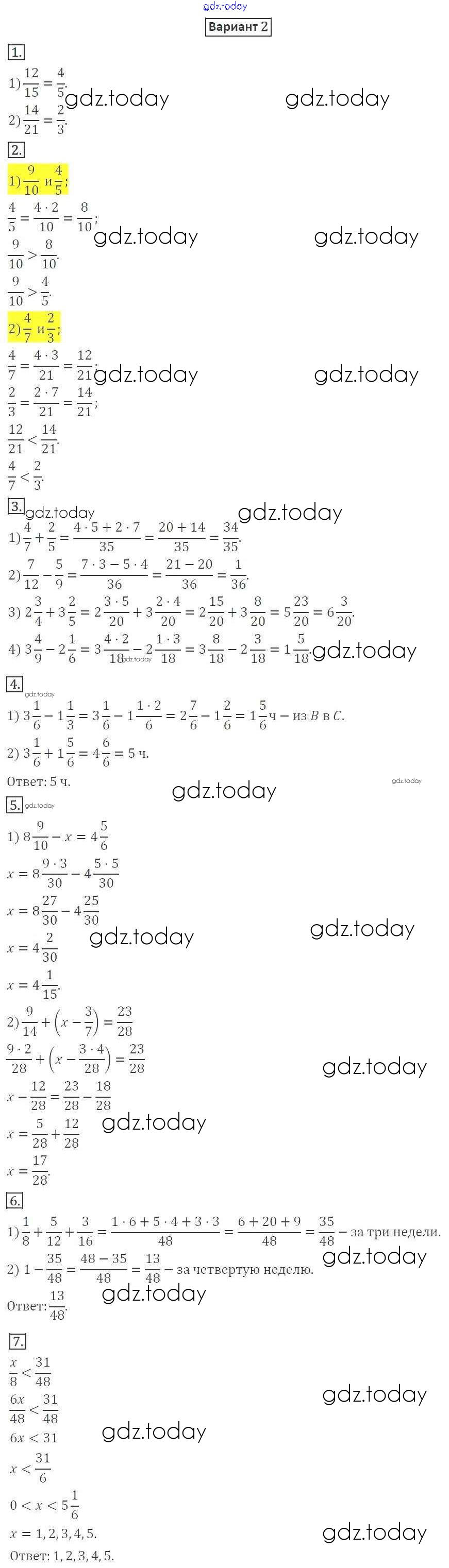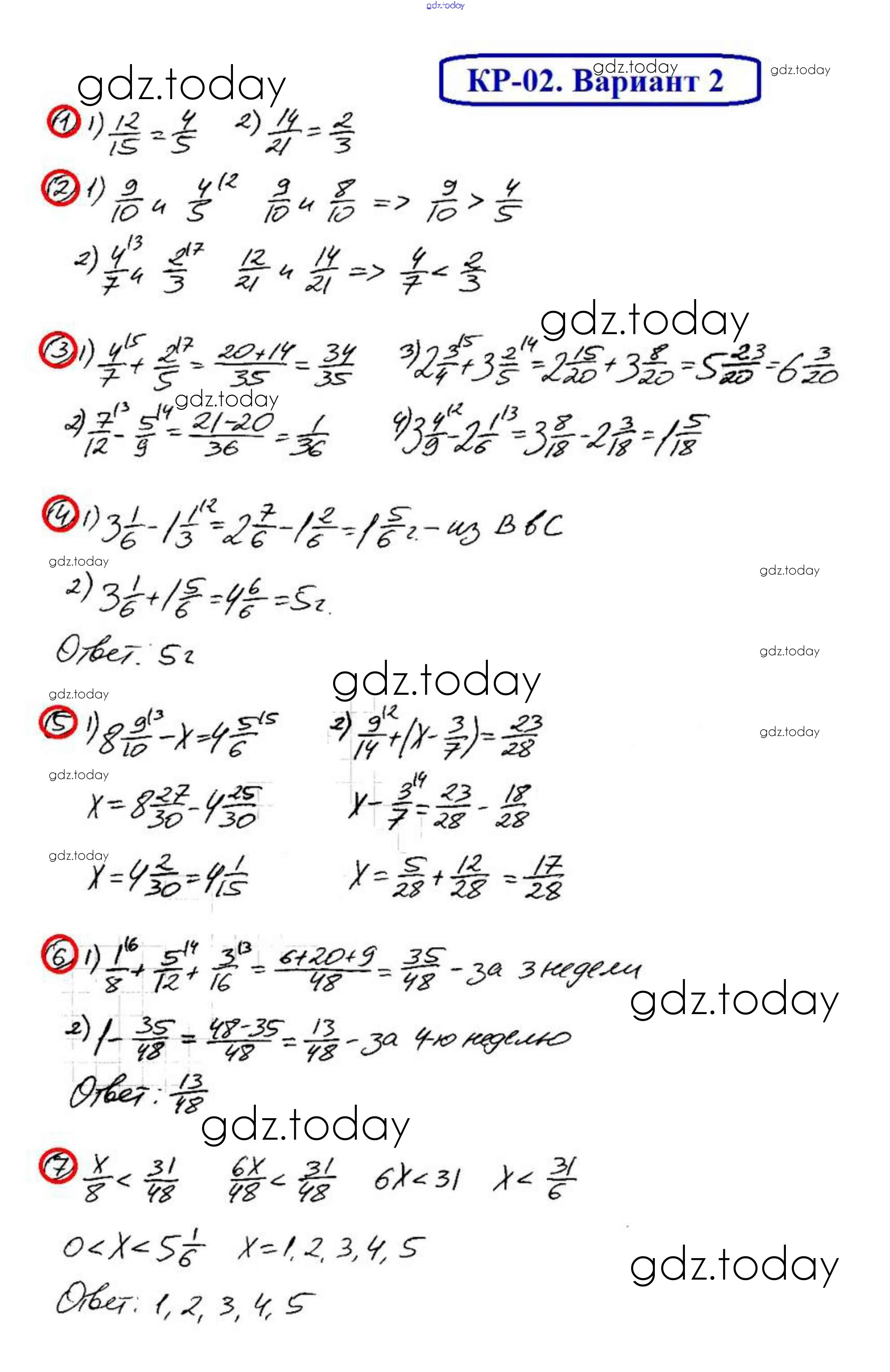 Ответы к КР-2. Варианты Решение к контрольным работам 2 Дидактическим материалам по Математике для 6 класса Мерзляк, Полонский Вентана-граф Алгоритм успеха 2017