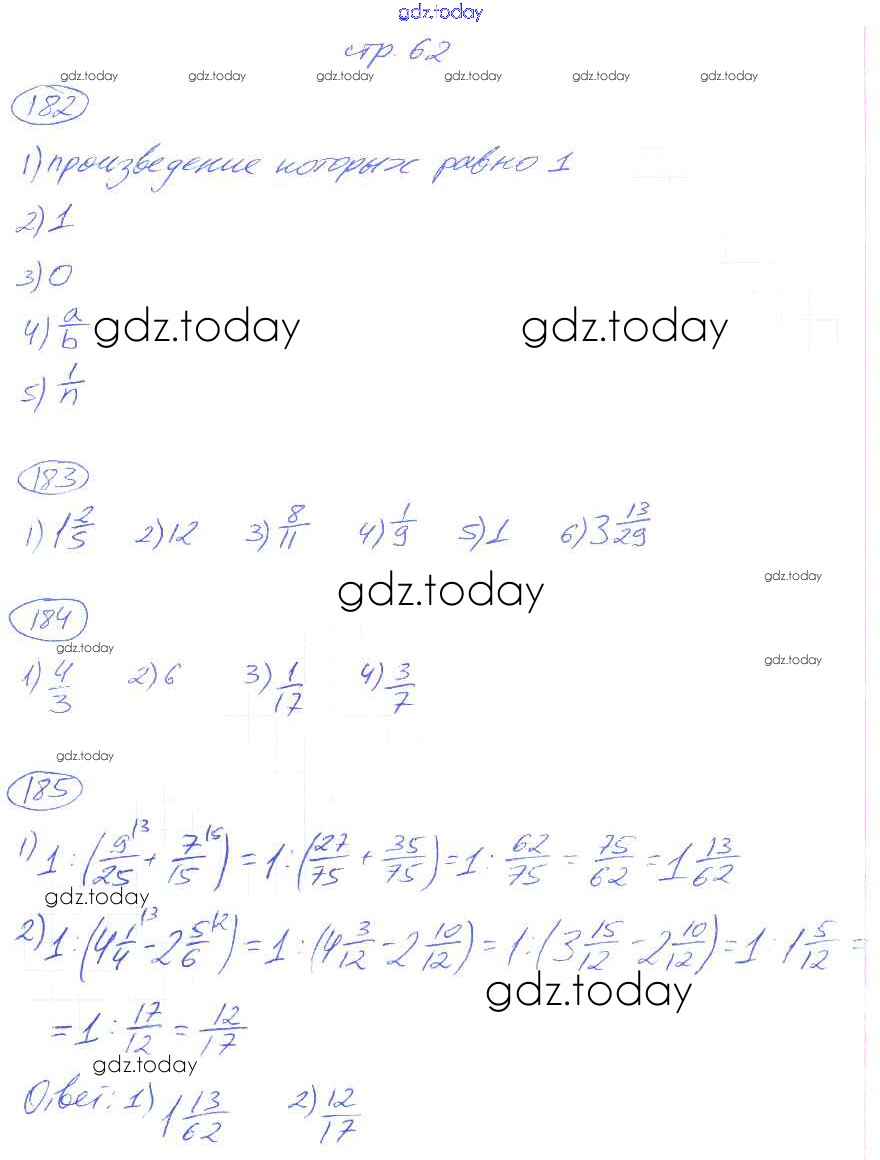На страницах сайта gdz.today вы найдете учебный и вспомогательный материал, направленный на улучшения знаний школьной программы. ГДЗ - онлайн мир знаний Решение к части 1. Страницы 62 Рабочей тетради по Математике для 6 класса Мерзляк, Полонский Вентана-граф Алгоритм успеха 2019