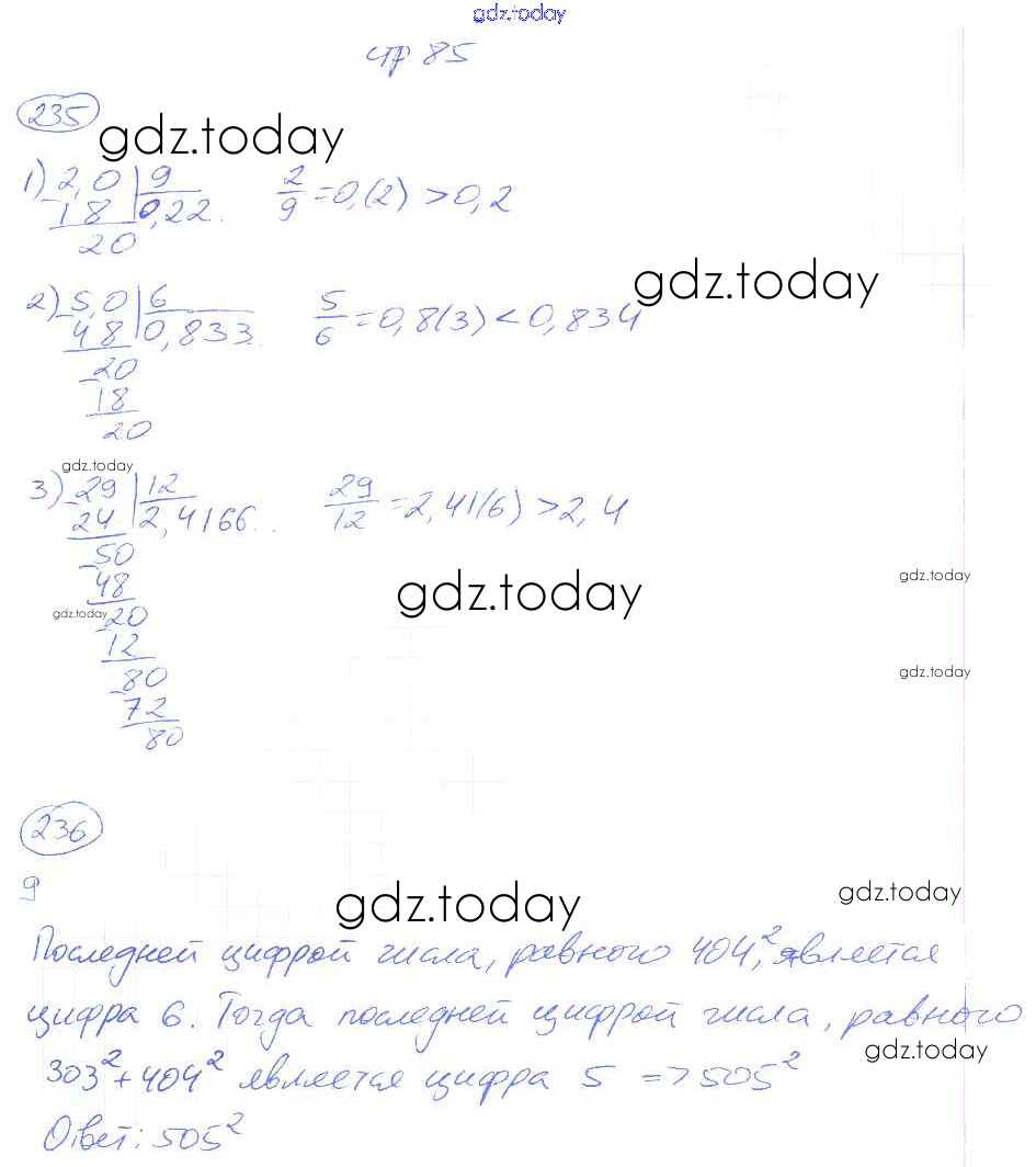 На страницах сайта gdz.today вы найдете учебный и вспомогательный материал, направленный на улучшения знаний школьной программы. ГДЗ - онлайн мир знаний Решение к части 1. Страницы 85 Рабочей тетради по Математике для 6 класса Мерзляк, Полонский Вентана-граф Алгоритм успеха 2019