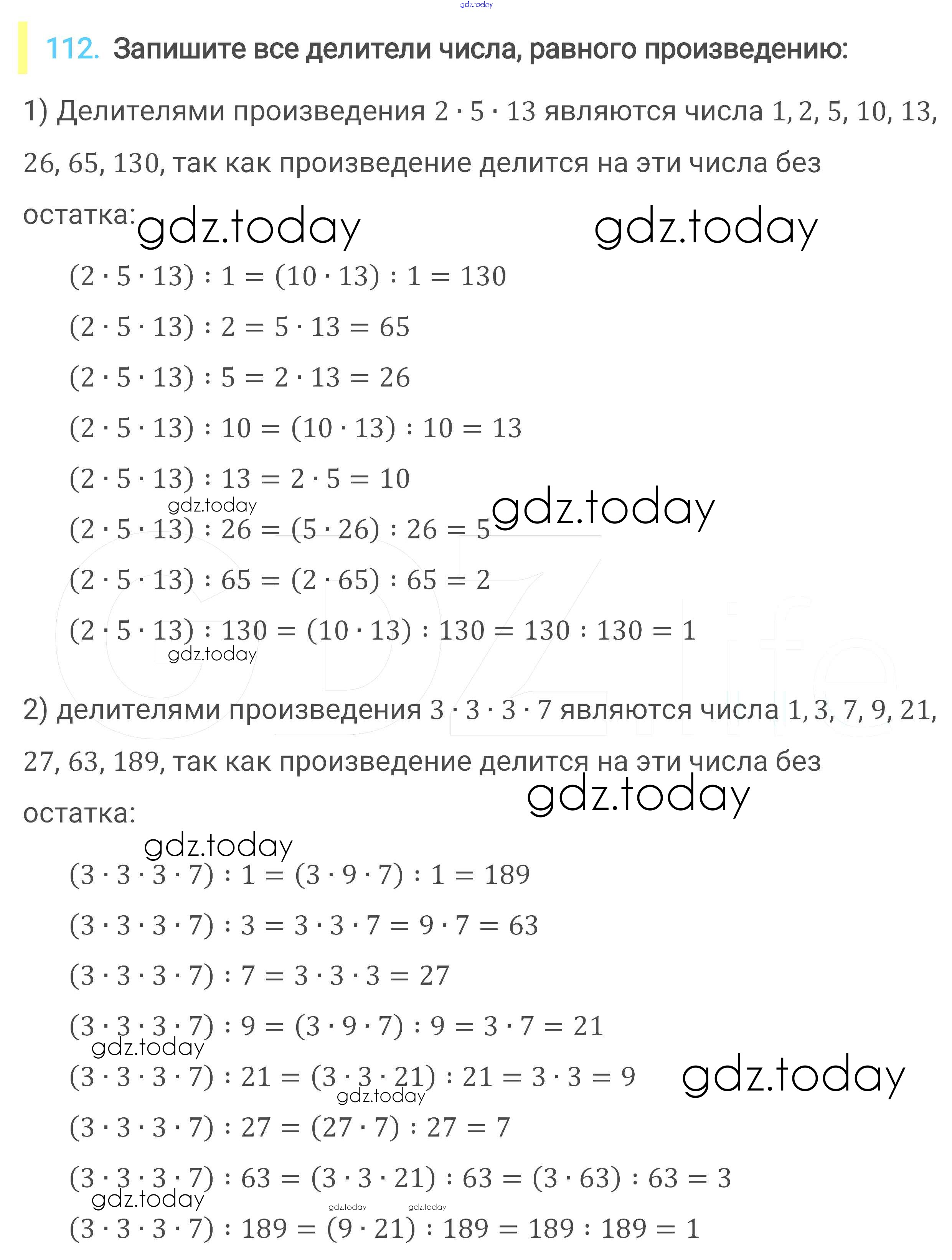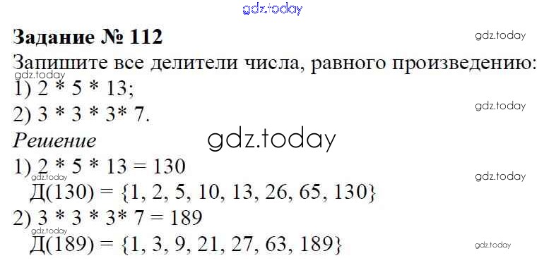 На страницах сайта gdz.today вы найдете учебный и вспомогательный материал, направленный на улучшения знаний школьной программы. ГДЗ - онлайн мир знаний Решение к главе 1. Делимость натуральных чисел (упражнения) 112 Учебнику по Математике для 6 класса Мерзляк, Полонский Вентана-граф Алгоритм успеха 2016