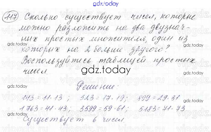 На страницах сайта gdz.today вы найдете учебный и вспомогательный материал, направленный на улучшения знаний школьной программы. ГДЗ - онлайн мир знаний Решение к главе 1. Делимость натуральных чисел (упражнения) 117 Учебнику по Математике для 6 класса Мерзляк, Полонский Вентана-граф Алгоритм успеха 2016