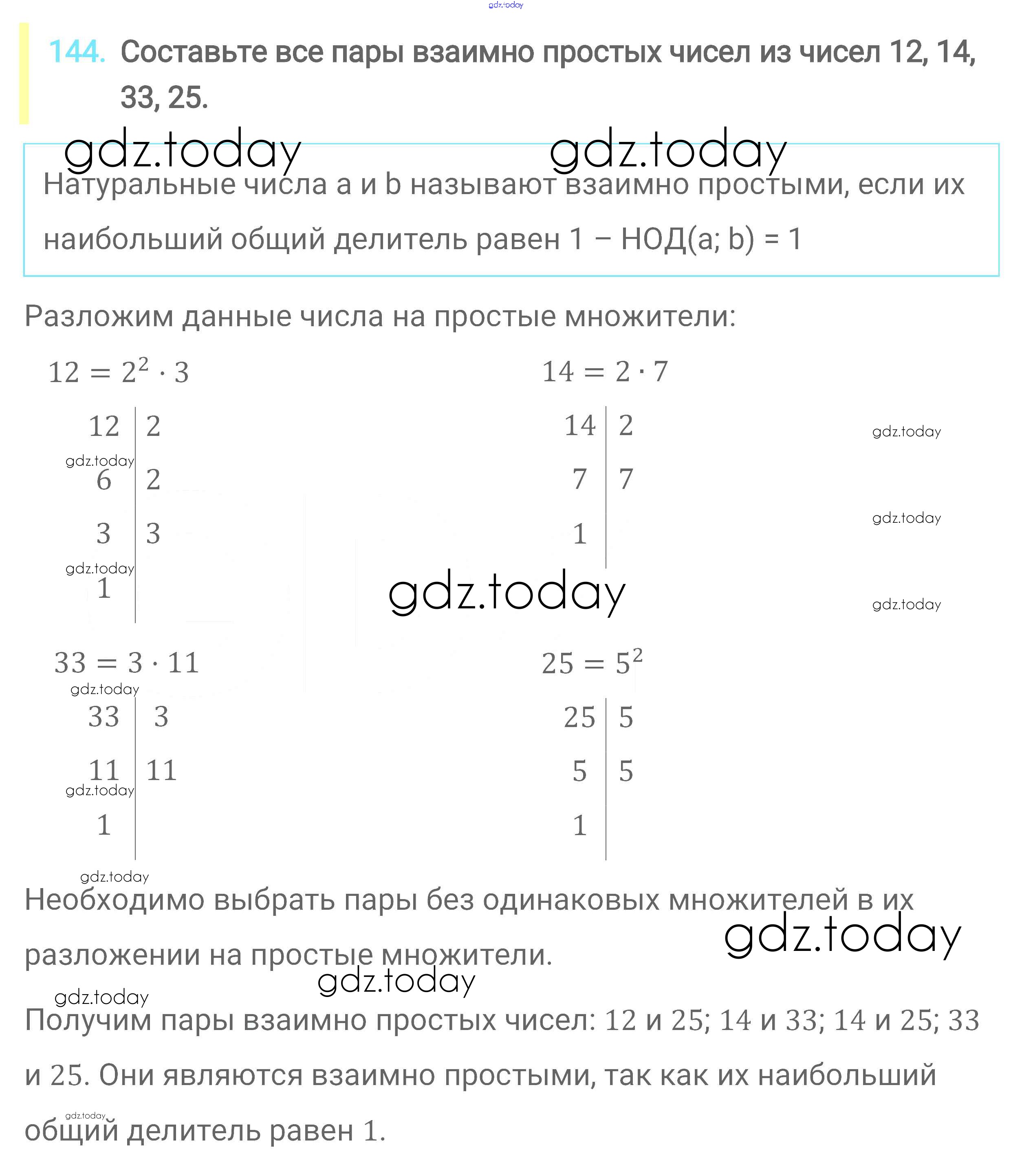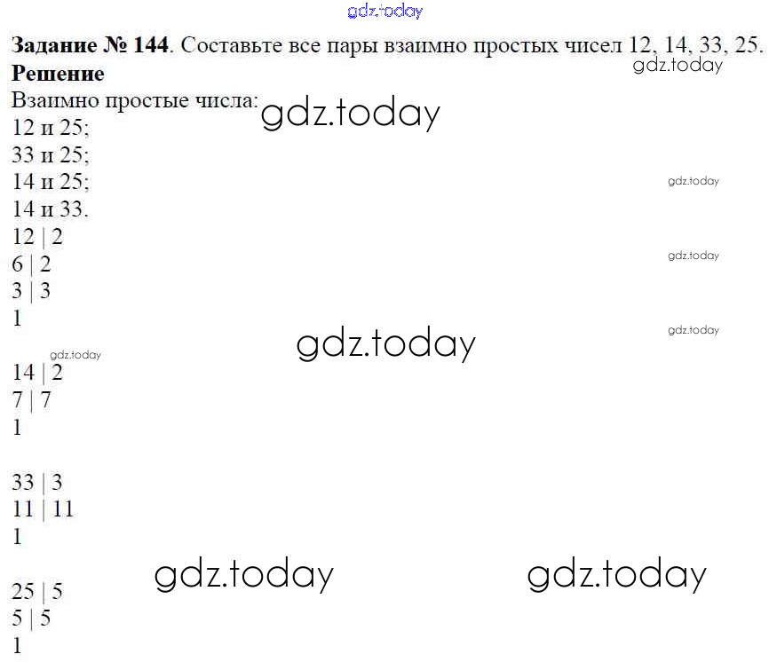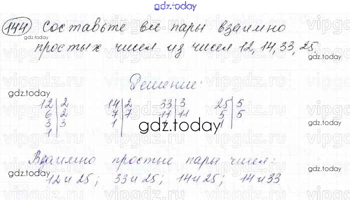 На страницах сайта gdz.today вы найдете учебный и вспомогательный материал, направленный на улучшения знаний школьной программы. ГДЗ - онлайн мир знаний Решение к главе 1. Делимость натуральных чисел (упражнения) 144 Учебнику по Математике для 6 класса Мерзляк, Полонский Вентана-граф Алгоритм успеха 2016