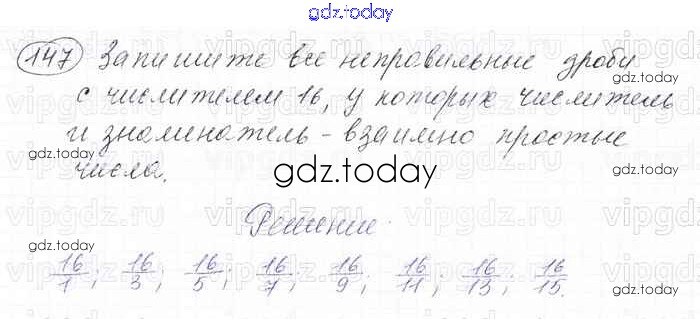 На страницах сайта gdz.today вы найдете учебный и вспомогательный материал, направленный на улучшения знаний школьной программы. ГДЗ - онлайн мир знаний Решение к главе 1. Делимость натуральных чисел (упражнения) 147 Учебнику по Математике для 6 класса Мерзляк, Полонский Вентана-граф Алгоритм успеха 2016